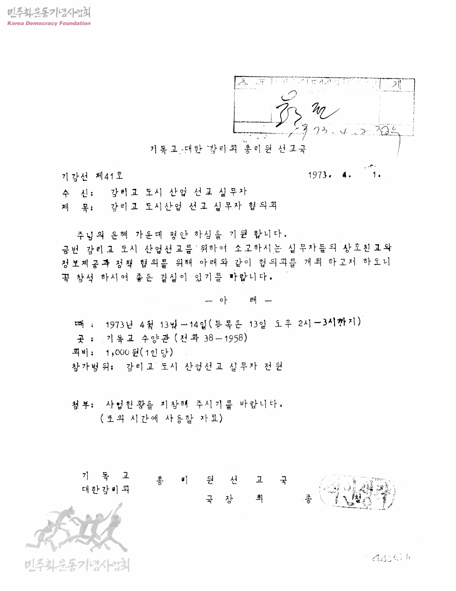 감리교 도시산업 선교 실무자 협의회 [수신: 감리교 도시산업 선교 실무자]