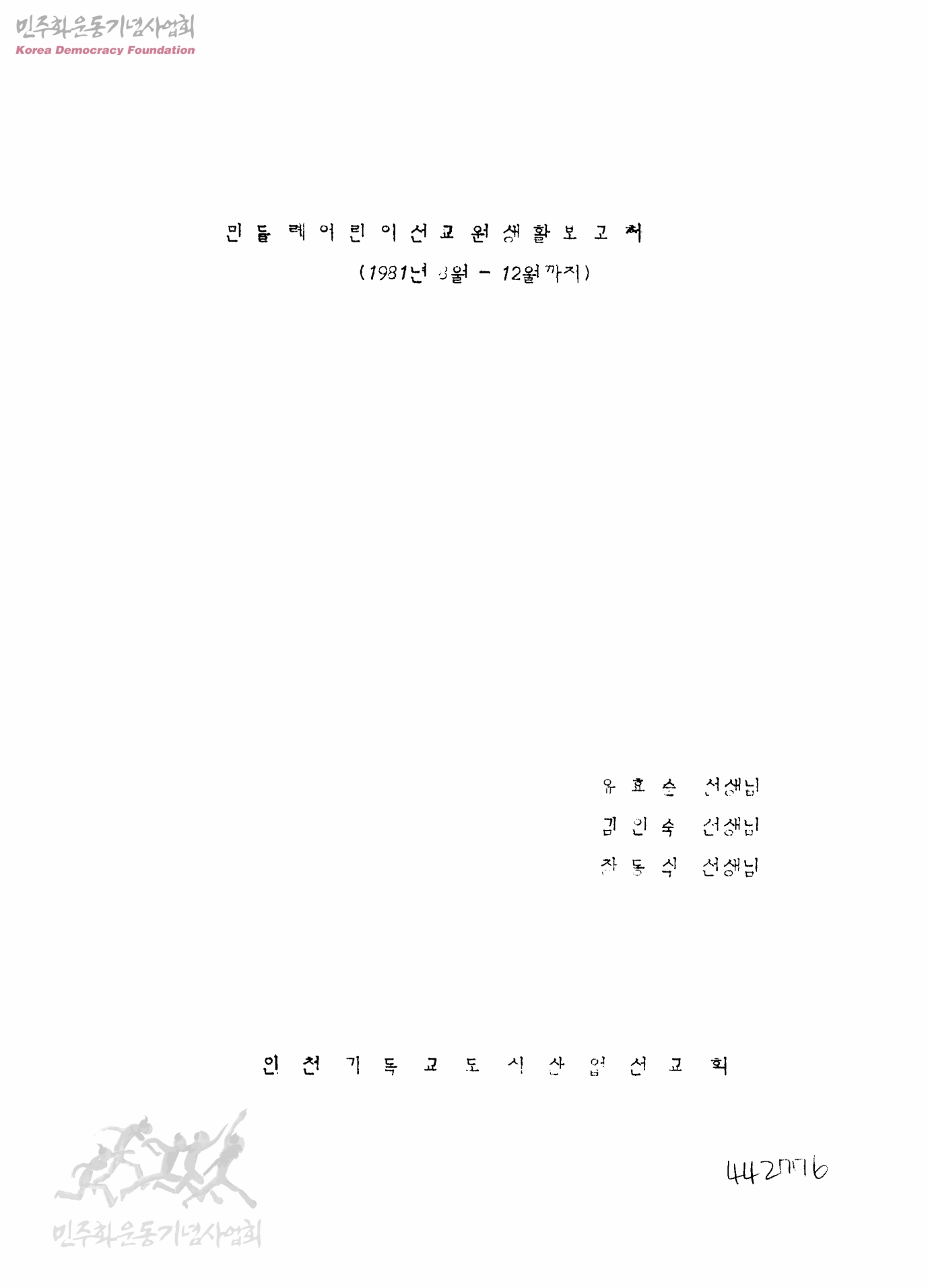 민들레어린이선교원생활보고서 (1981년8월-12월까지)
