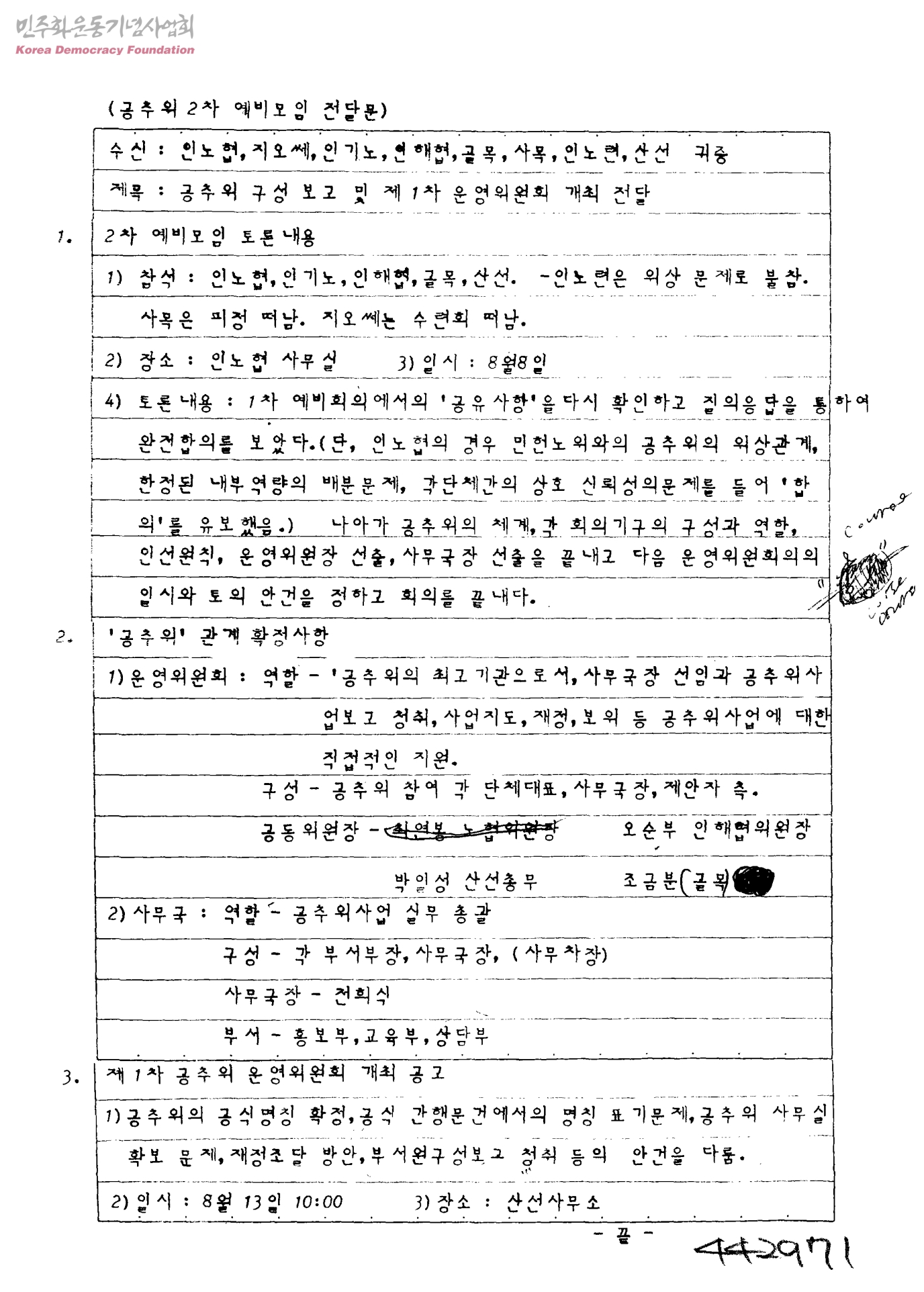공추위 2차 예비모임 전달문-공추위 구성 보고 및 제1차 운영위원회 개최 전달[수신:인노협, 인기노, 인해협, 골목, 사목, 인노련, 산선]