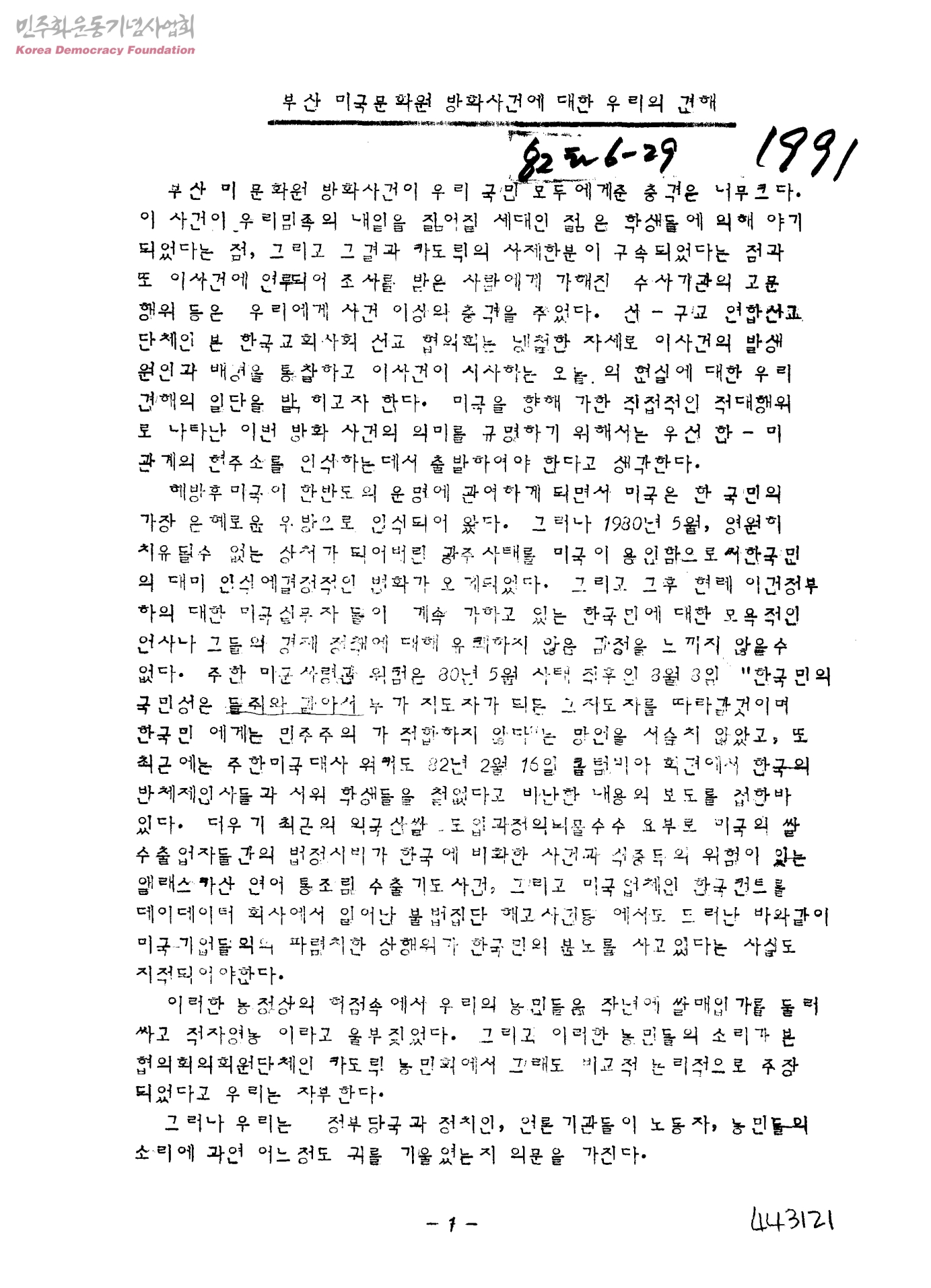 부산 미국문화원 방화사건에 대한 우리의 견해