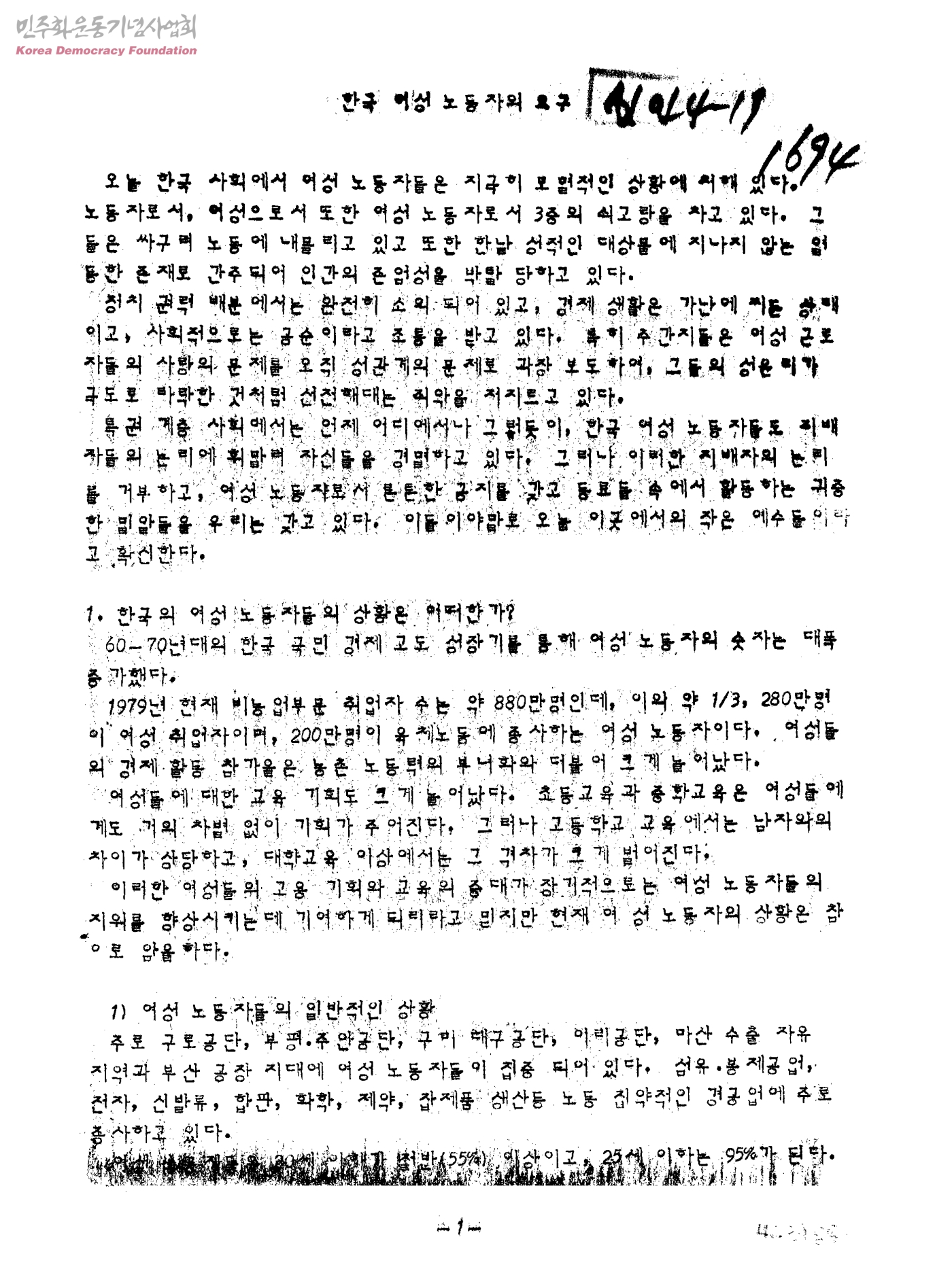 한국 여성 노동자의 요구
