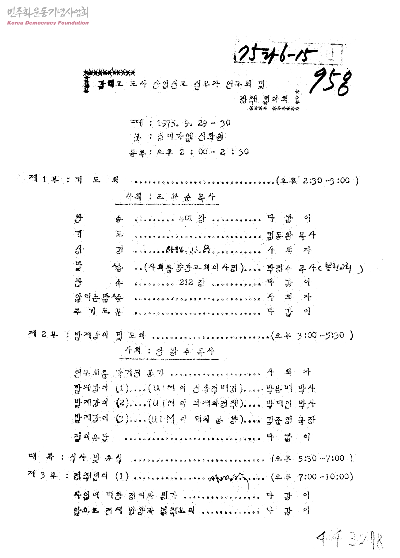 감리교 도시 산업선교 실무자 연구회 및 정책 협의회