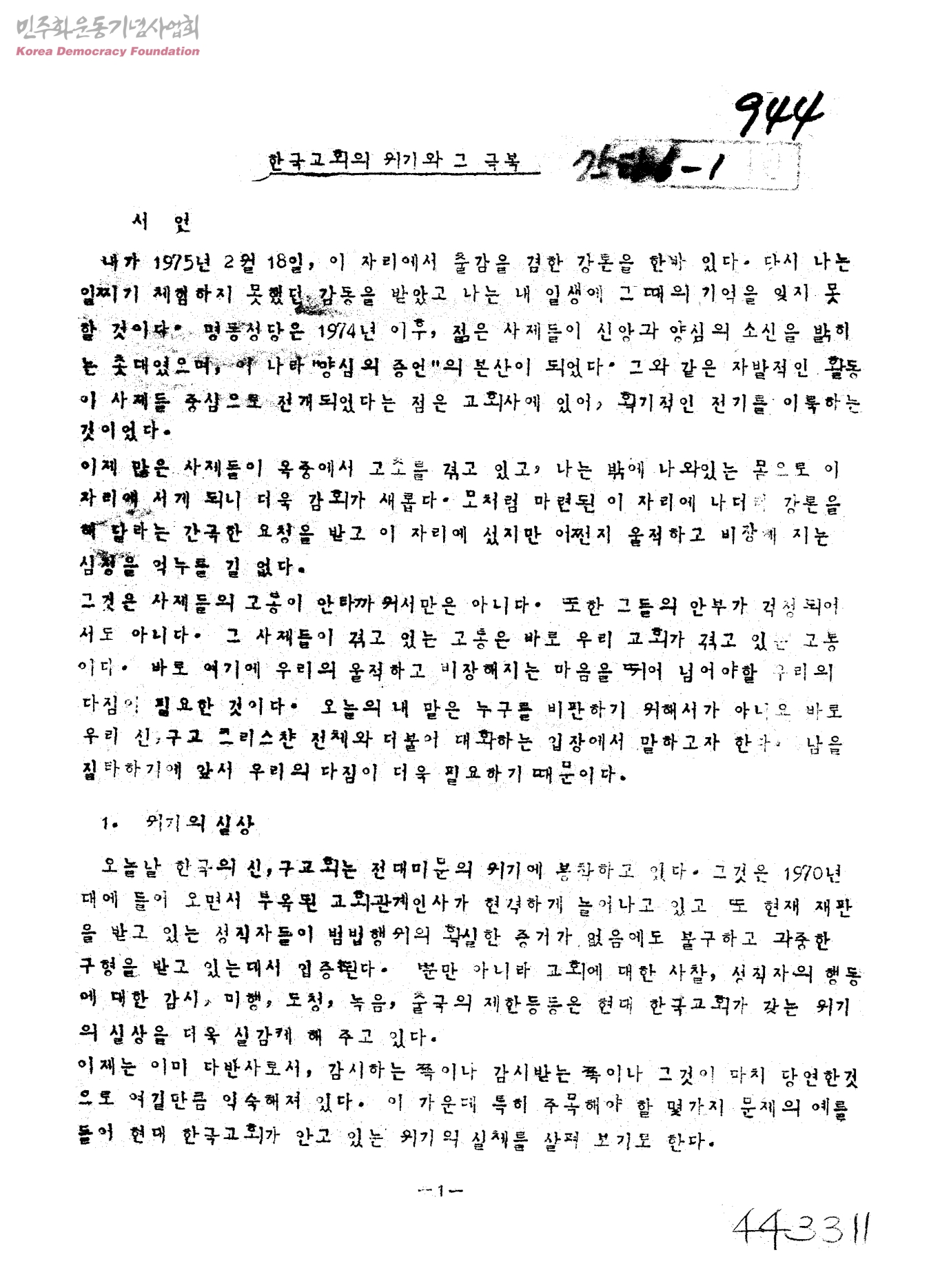 한국교회의 위기와 그 극복