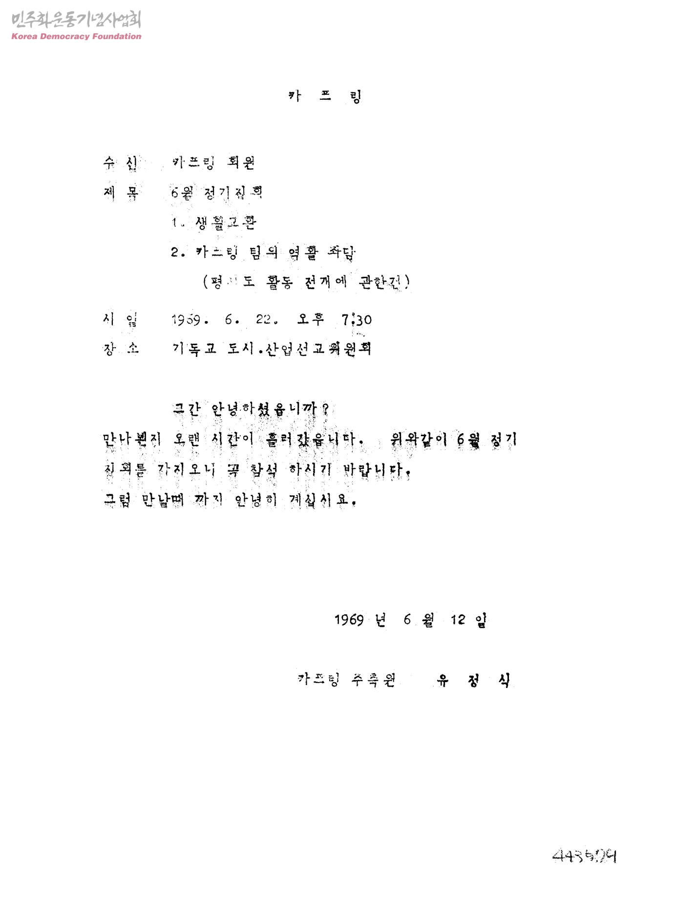 6월 정기집회[수신:카프링 회원]