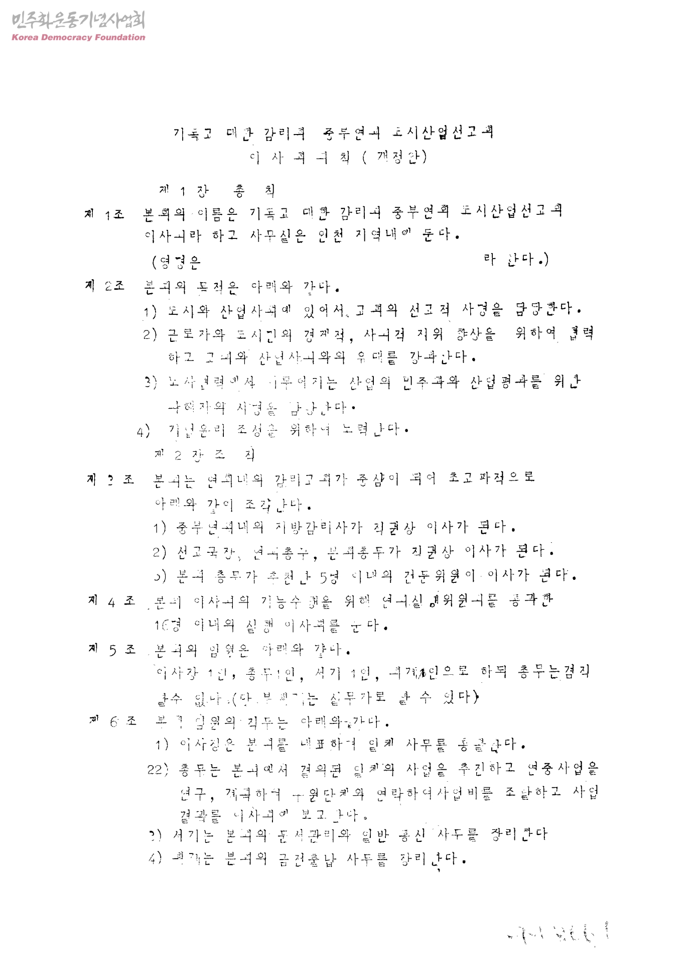 기독교 대한감리회 중부연회 도시산업선교회 이사회 회칙(개정안)
