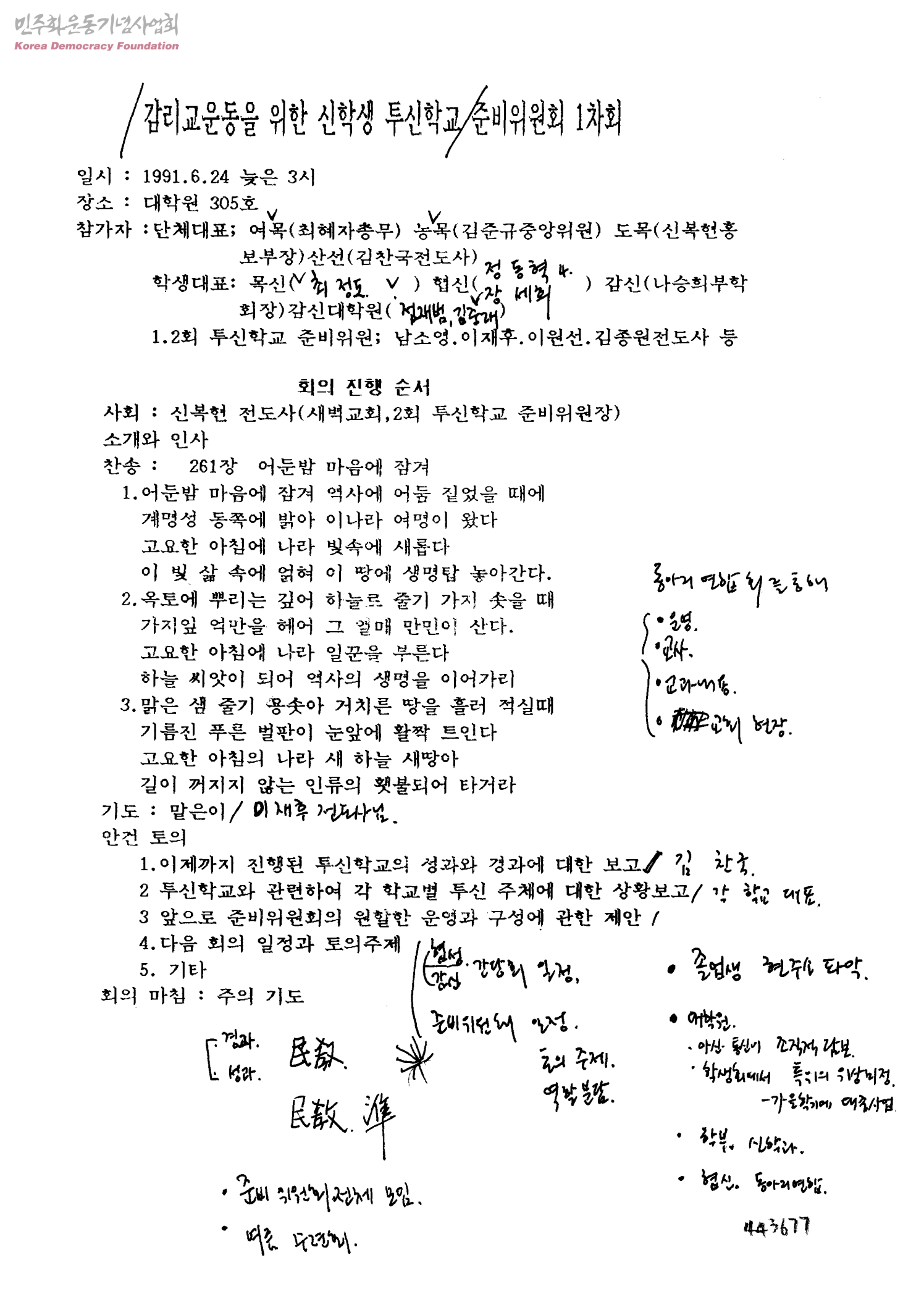 감리교운동을 위한 신학생 투신학교 준비위원회 1차회
