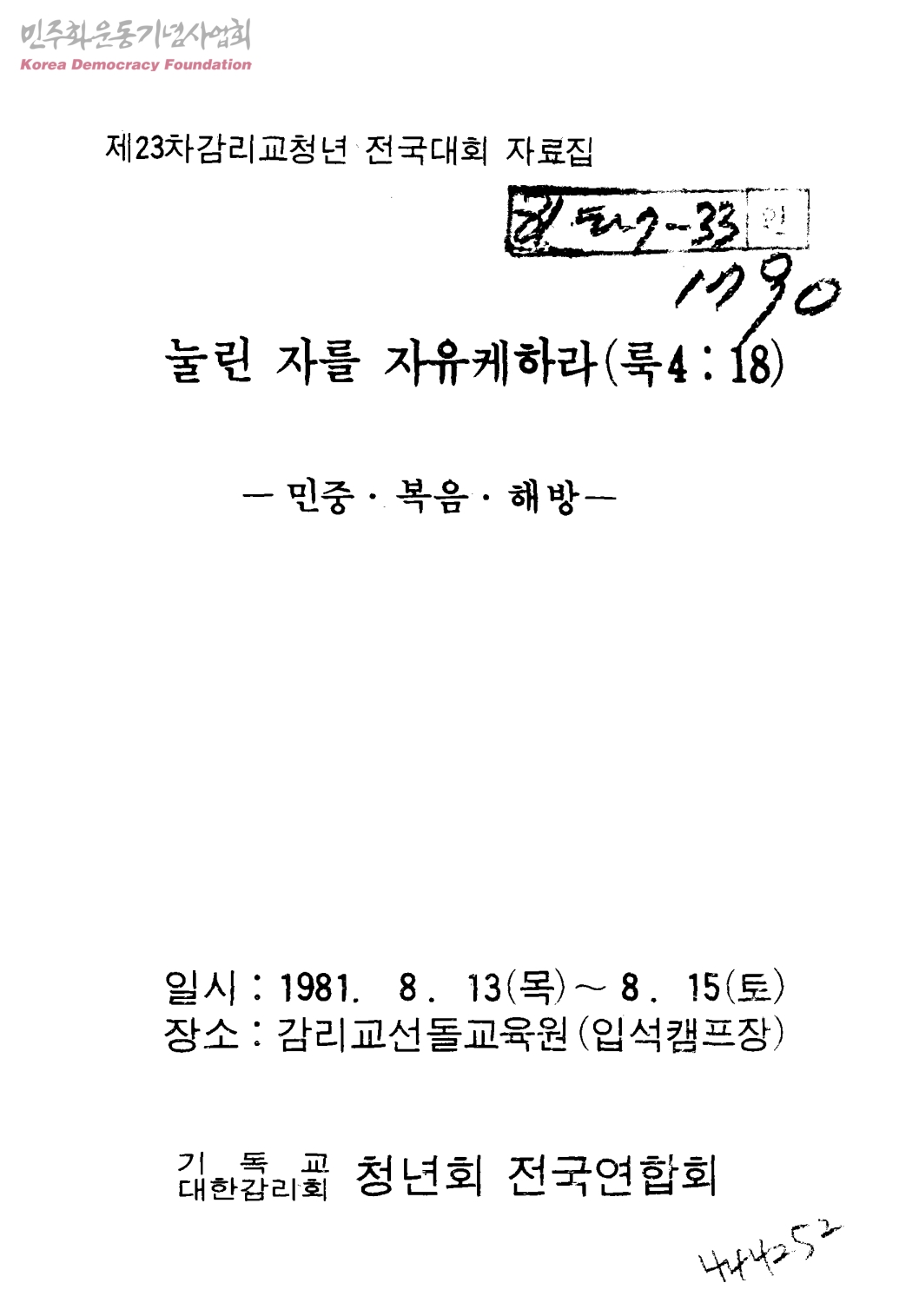 제23차감리교청년 전국대회 자료집-눌린 자를 자유케하라(룩4:18