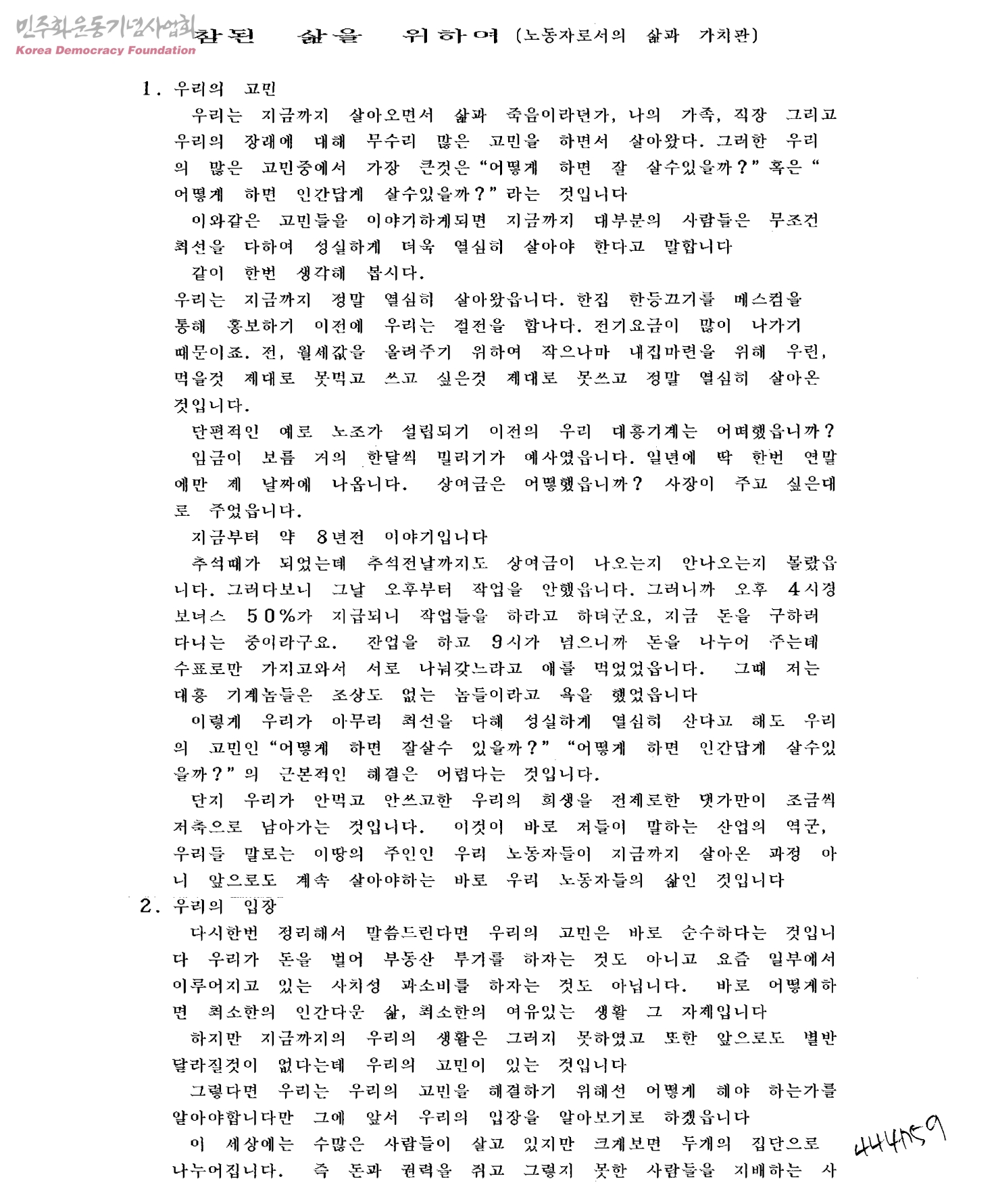 참된 삶을 위하여(노동자로서의 삶과 가치관)
