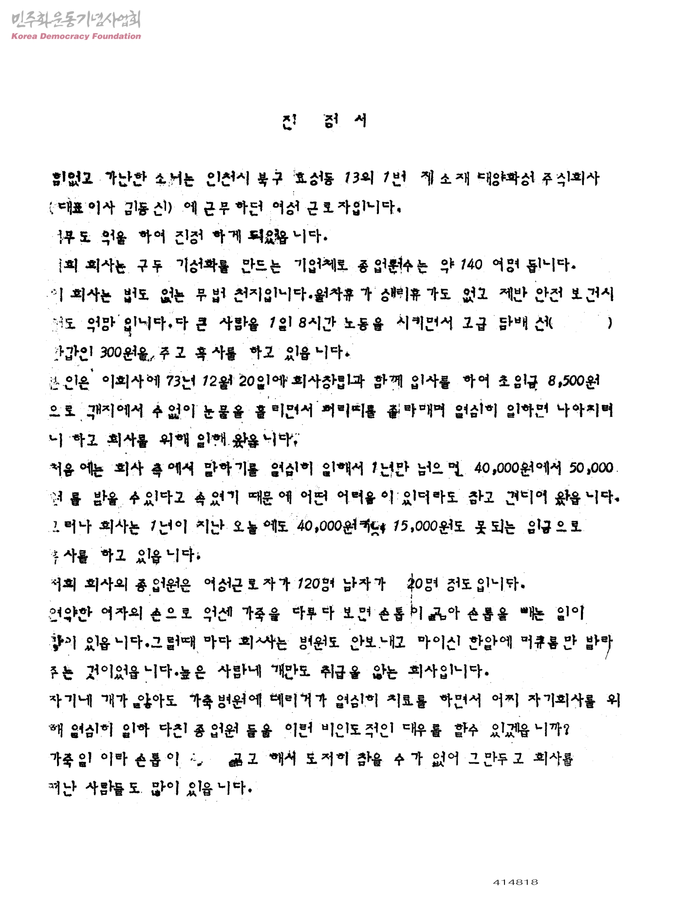 진정서[대양화성주식회사 권정희 부당해고 관련]