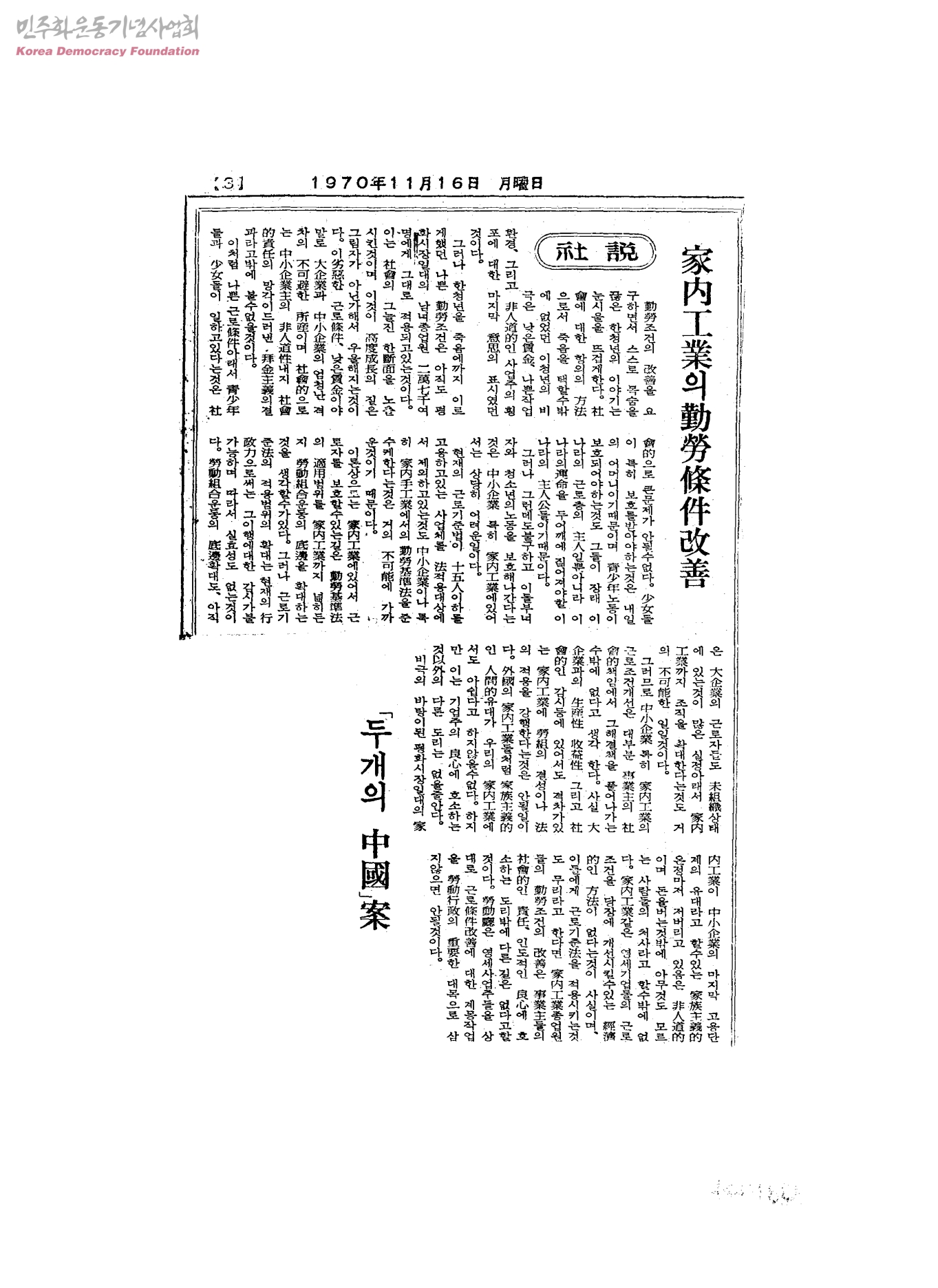 [신문스크랩] 社說 家內工業의 勤勞條件改善
