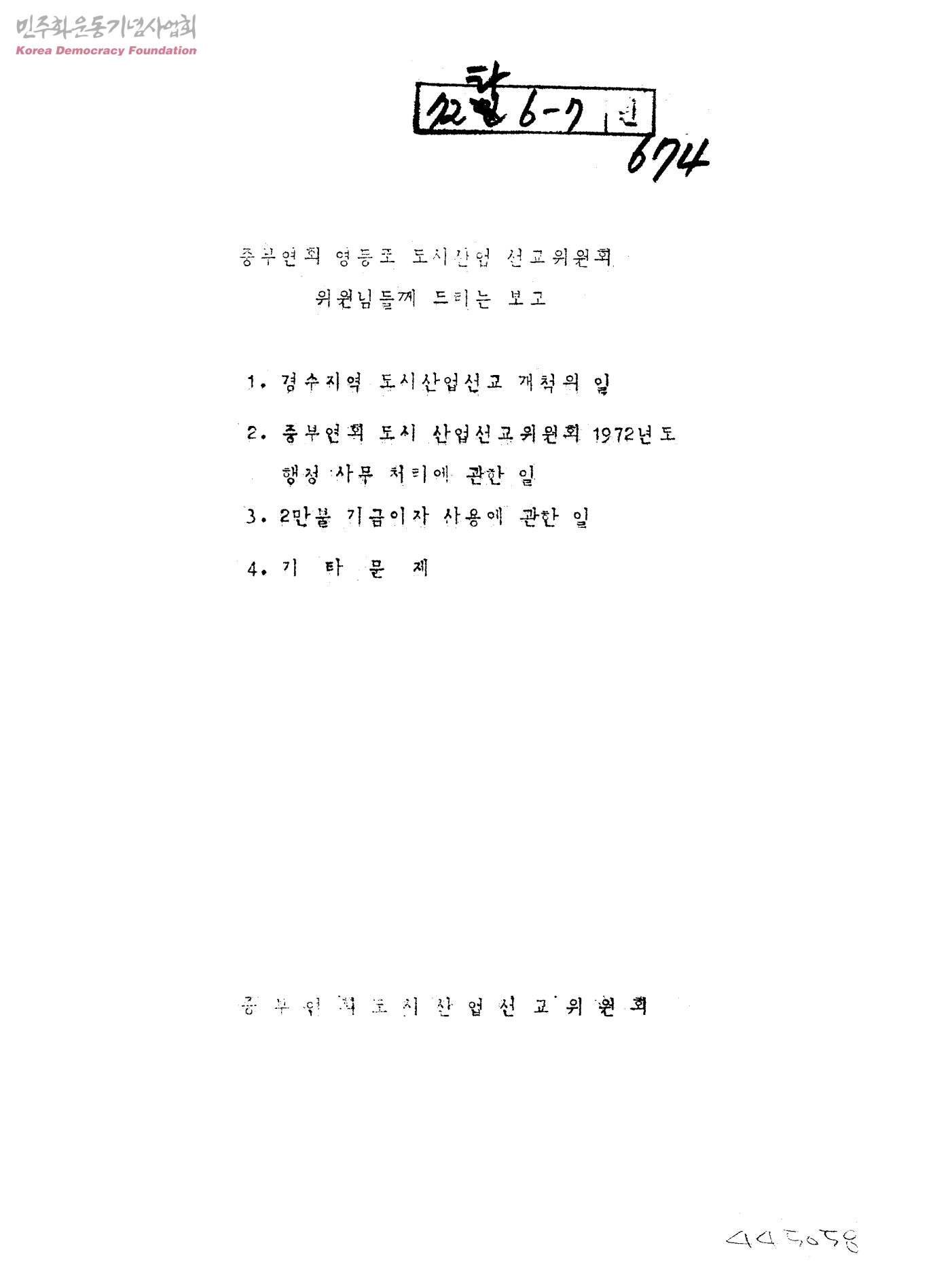 중부연회 영등포 도시산업 선교위원회 위원님들께 드리는 보고