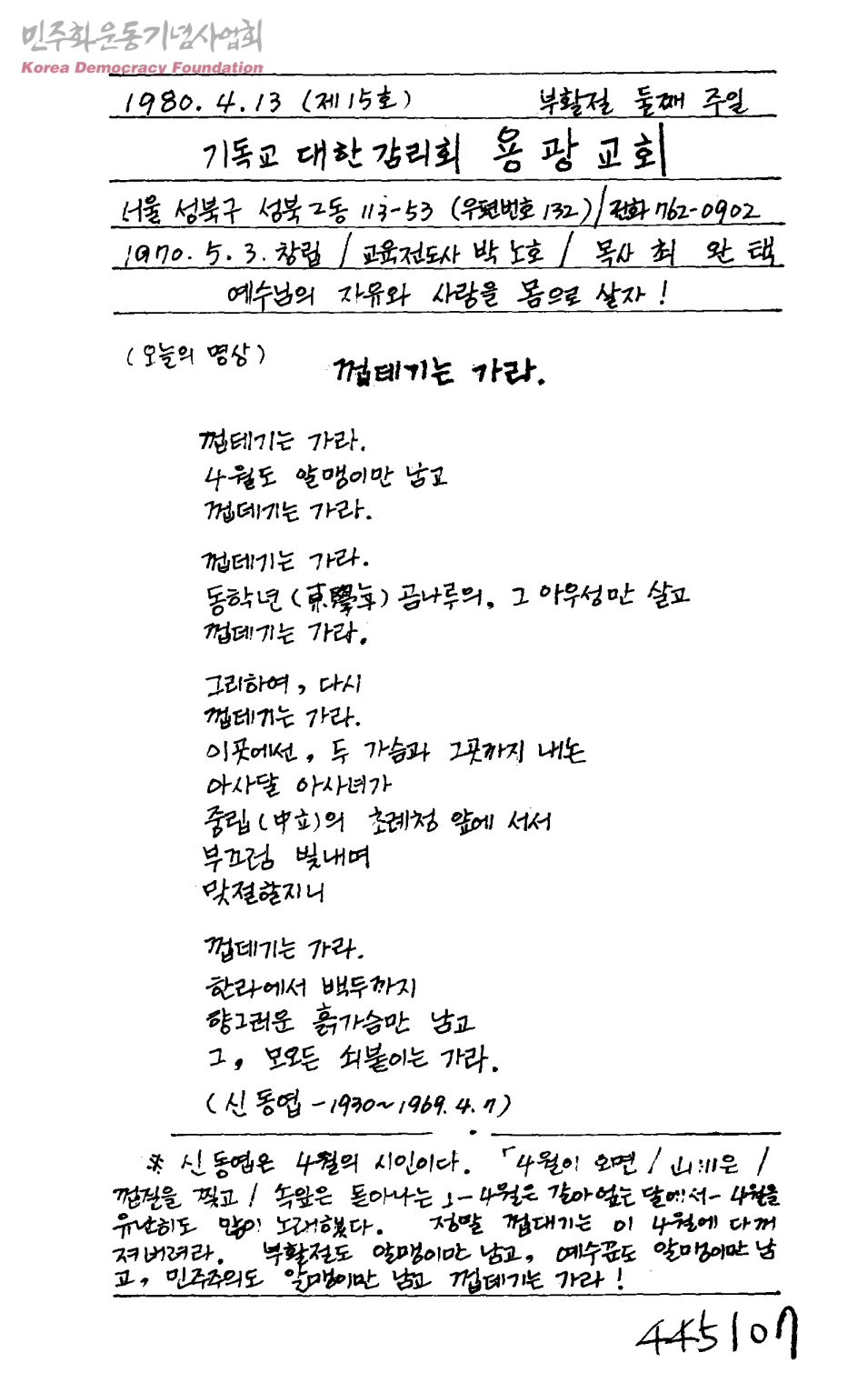 - 생산자 및 기증자가 ‘박용수’인 사진의 사용은 구매신청을 클릭하여 직접 사진 구매 신청을 하실 수 있습니다. 생산자 및 기증자가 ‘경향신문사’인 사진의 사용은 경향신문사 담당자(02-3701-1635)를 통해 구매하실 수 있습니다. 그 외의 생산자 및 기증자는 민주화운동기념사업회 사료관 담당자( hyunchaek@kdemo.or.kr / 02-6440-8961 )에 문의바랍니다.
