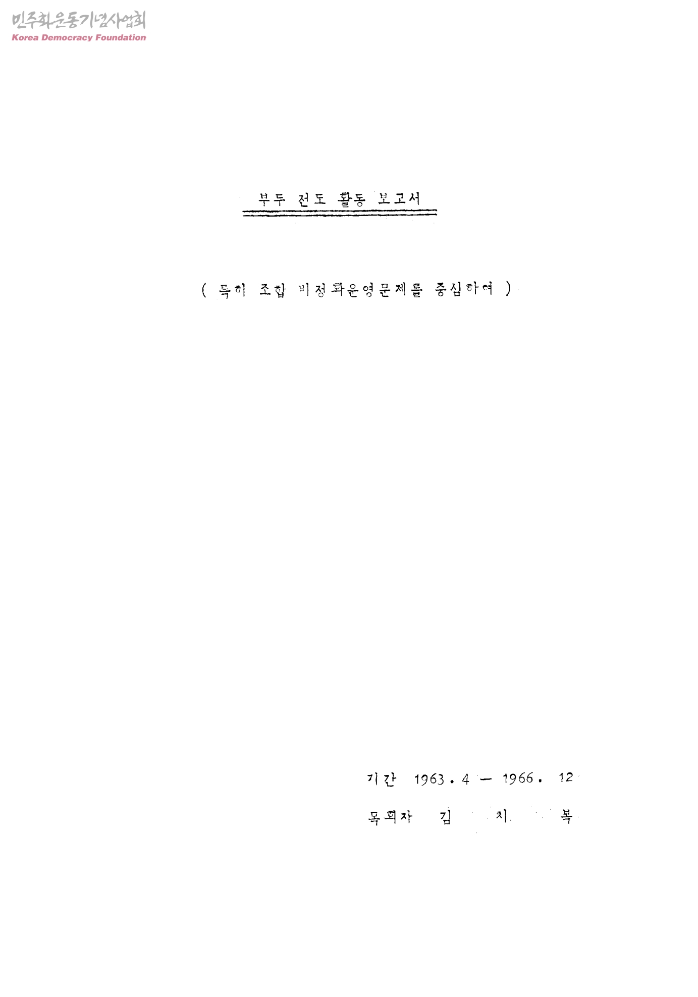 부두 전도 활동 보고서-특히 조합 비정화운영문제를 중심하여