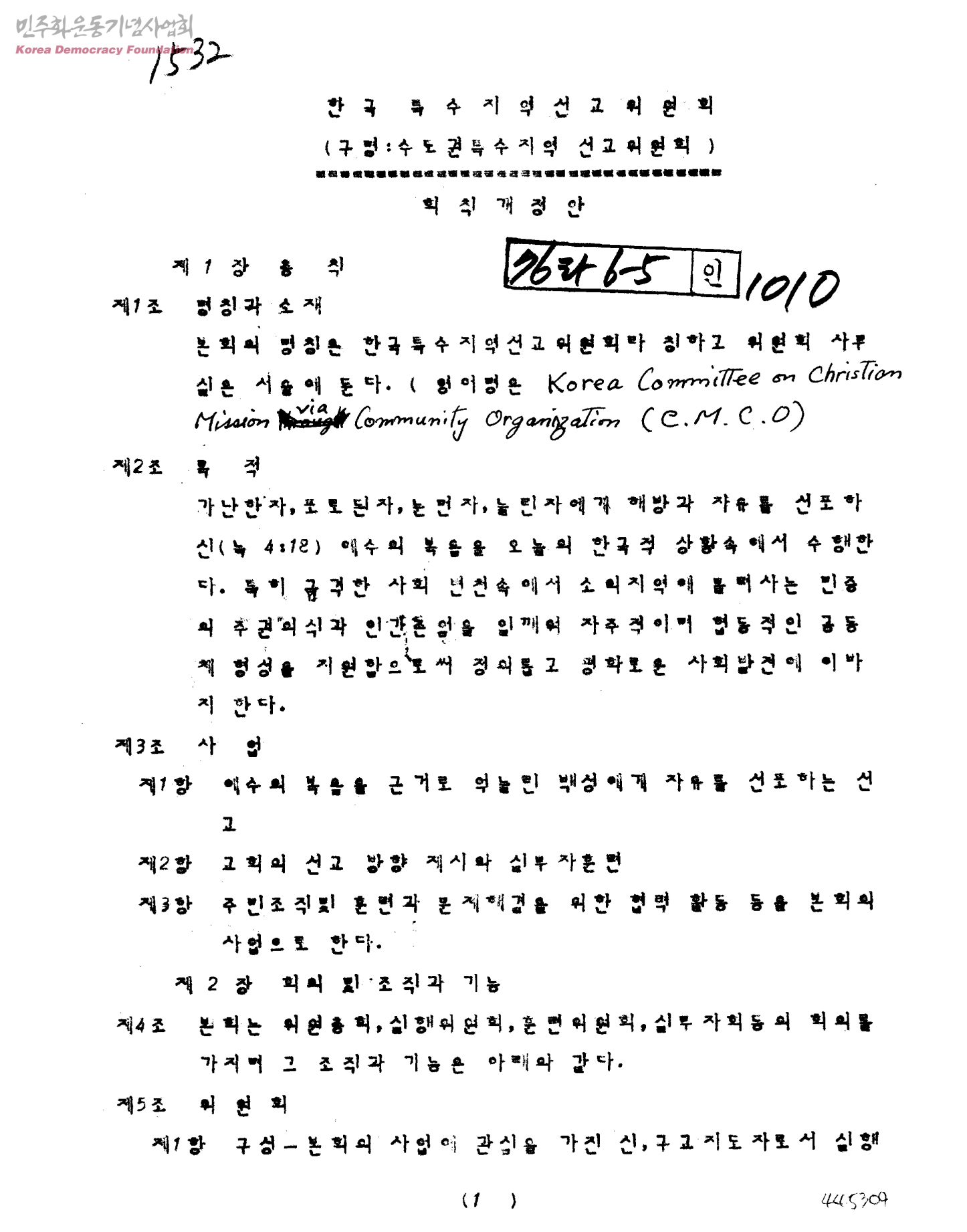 한국 특수지역선교 위원회(구명:수도권특수지역 선교 위원회) 회칙개정안