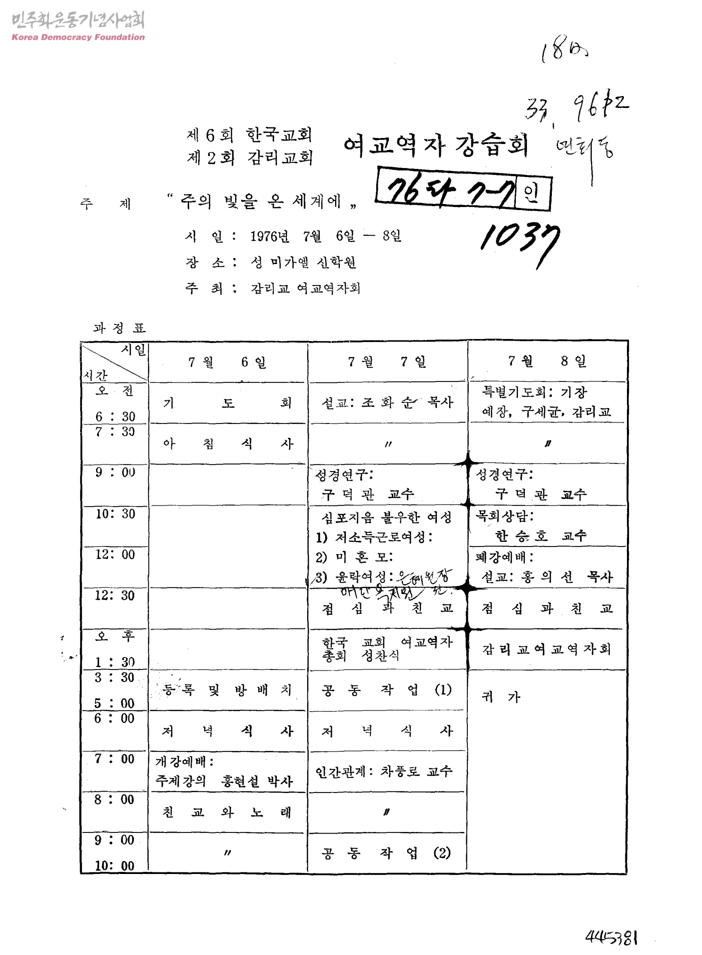 제6회 한국교회 제2회 감리교회 여교역자 강습회