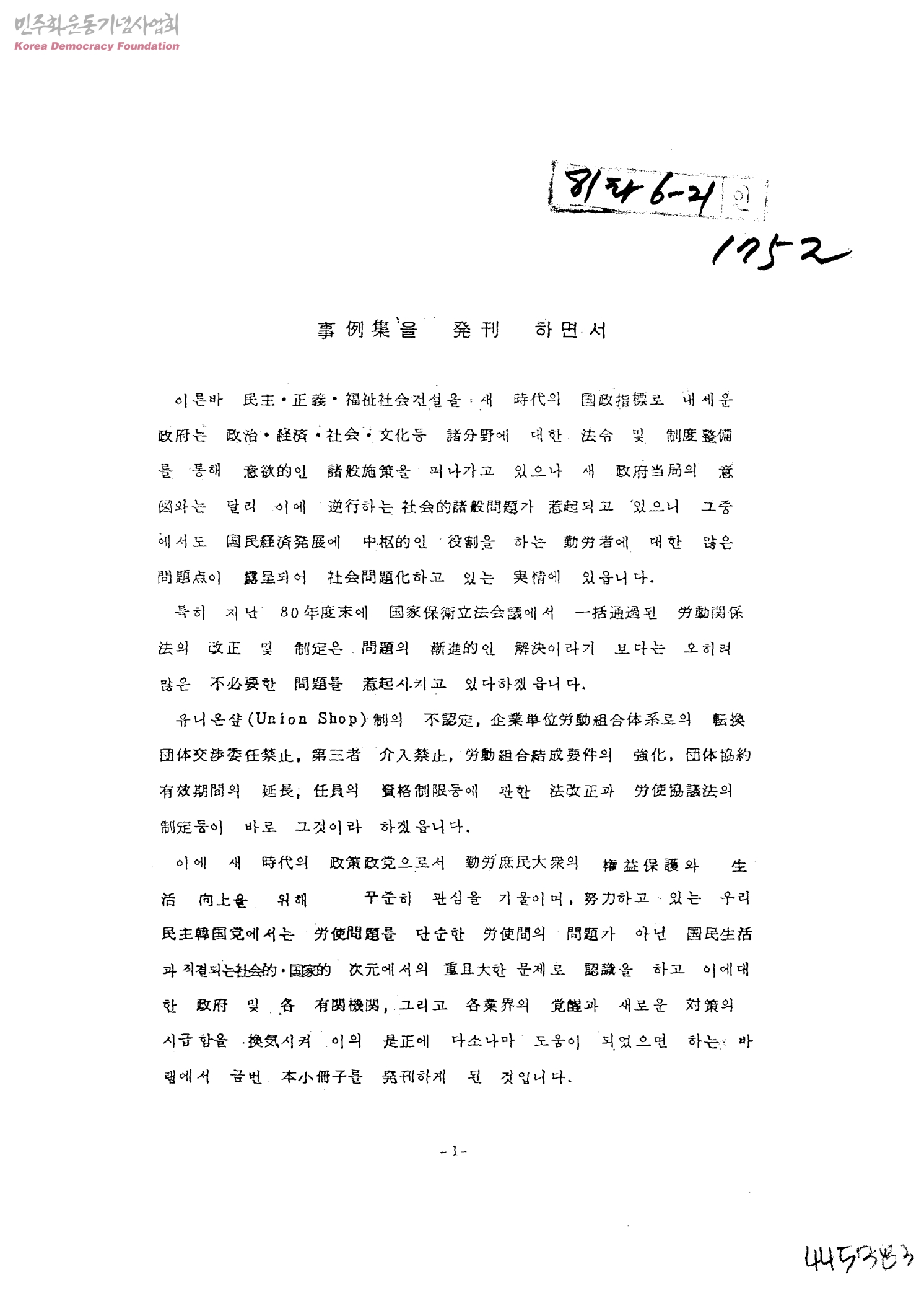 事例集을 發刊 하면서