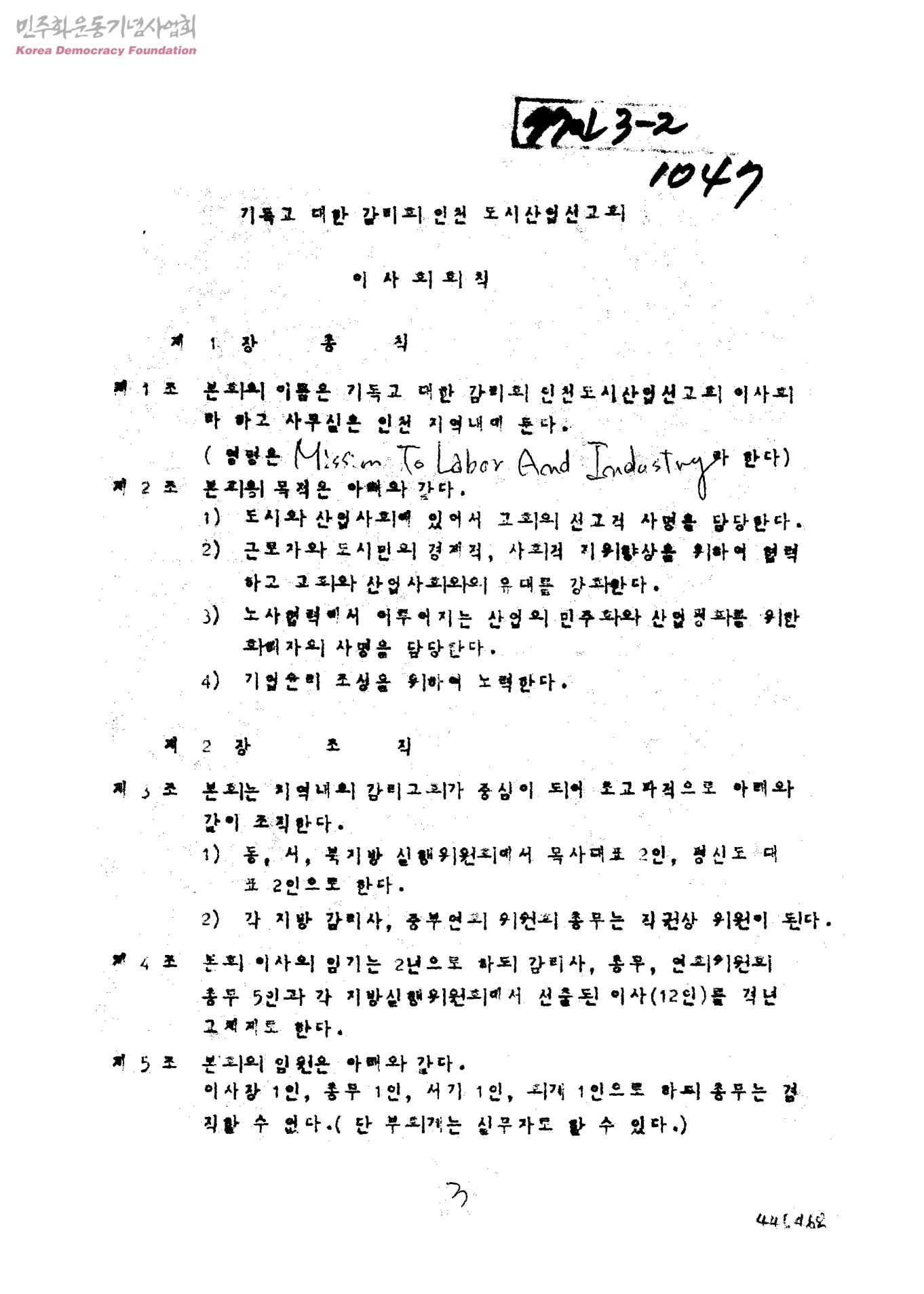 기독교 대한 감리회 인천 도시산업선교회 이사회 회칙