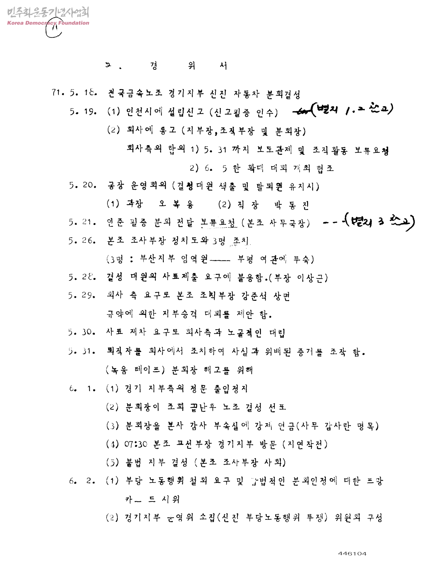2. 경위서[신진분회장 김창수의 경위내용 진술]