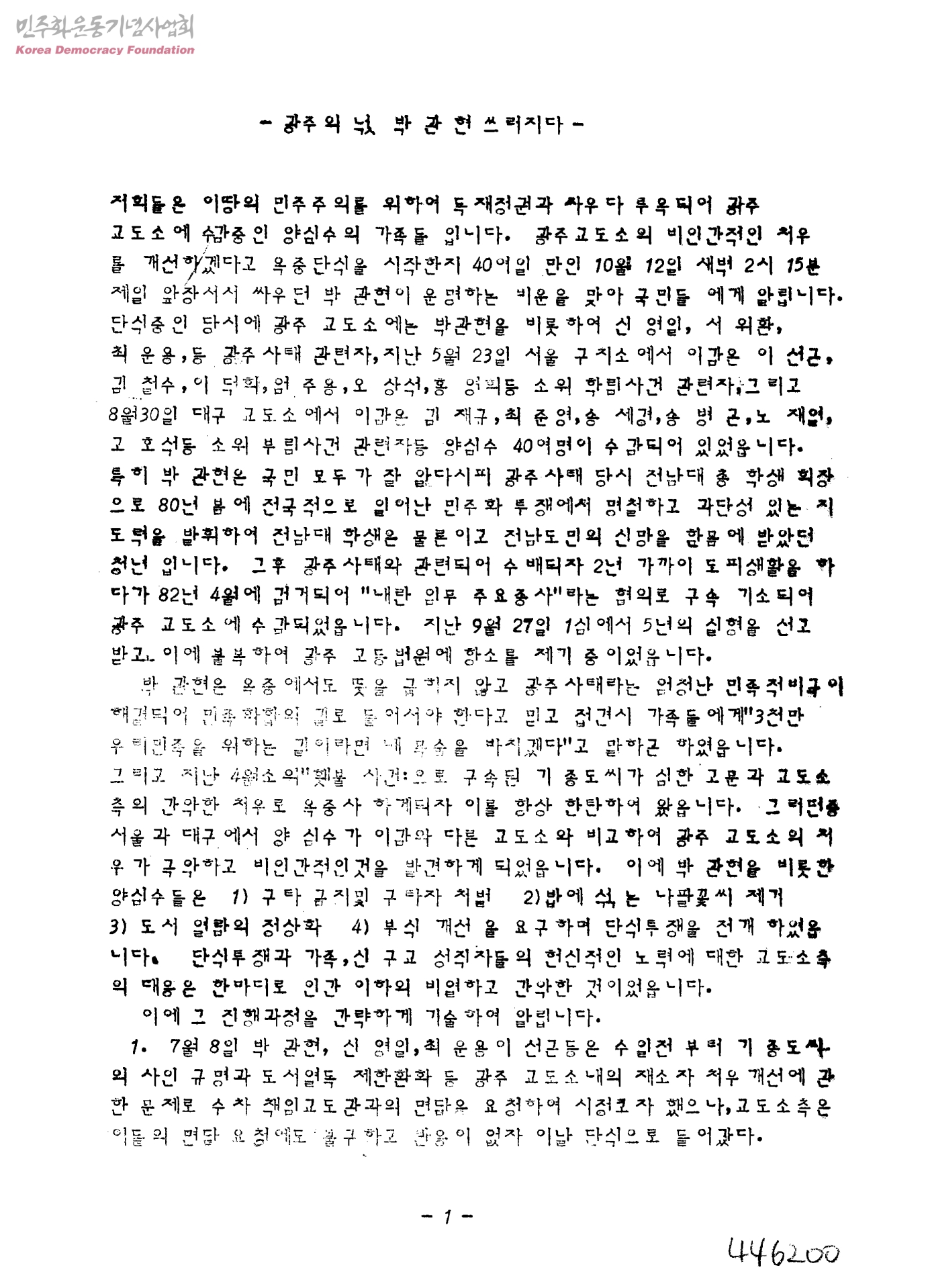 - 생산자 및 기증자가 ‘박용수’인 사진의 사용은 구매신청을 클릭하여 직접 사진 구매 신청을 하실 수 있습니다. 생산자 및 기증자가 ‘경향신문사’인 사진의 사용은 경향신문사 담당자(02-3701-1635)를 통해 구매하실 수 있습니다. 그 외의 생산자 및 기증자는 민주화운동기념사업회 사료관 담당자( hyunchaek@kdemo.or.kr / 02-6440-8961 )에 문의바랍니다.