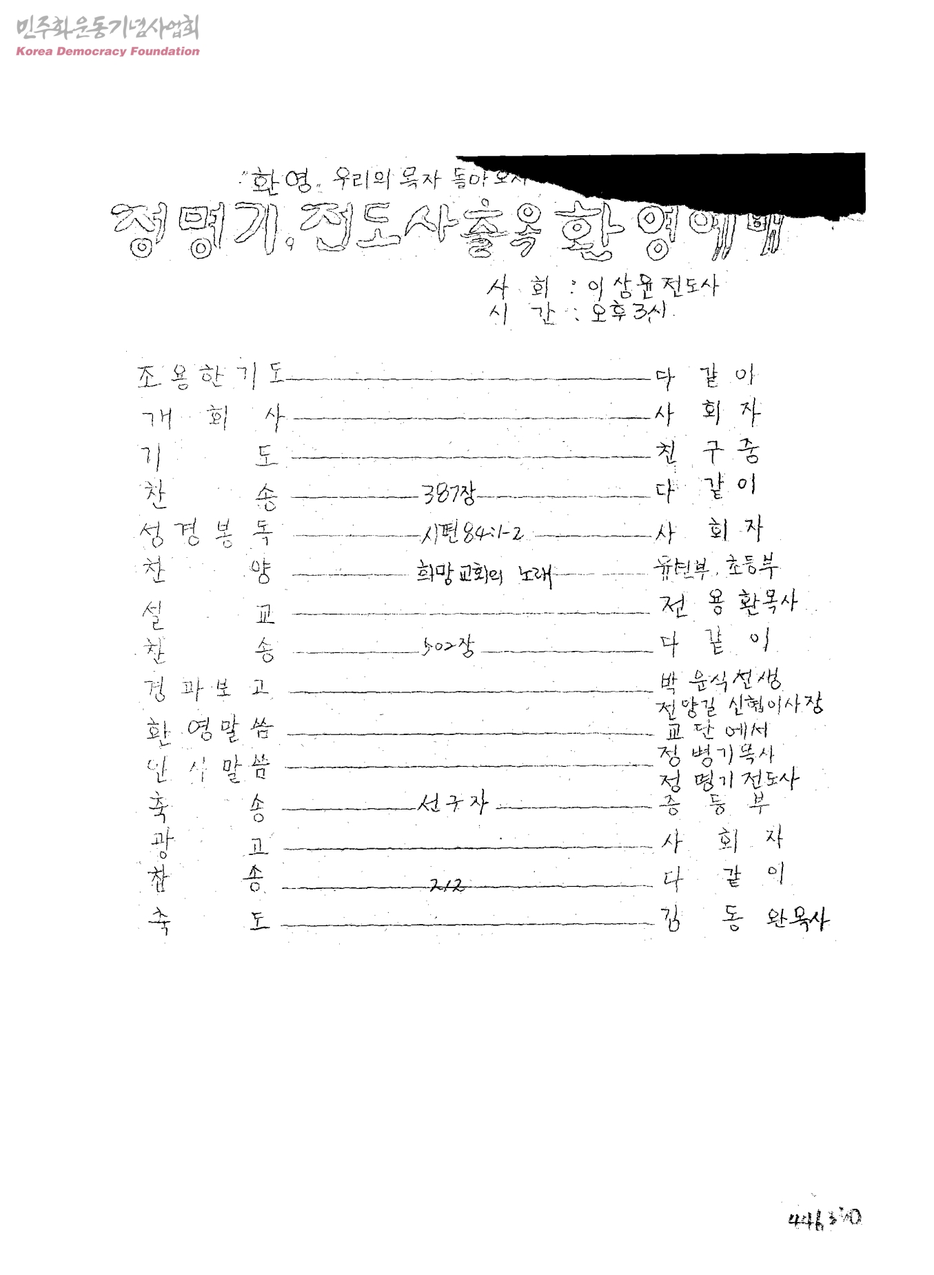 환영 우리이 목자 돌아오시다-정명기,전도사출옥 환영 예배