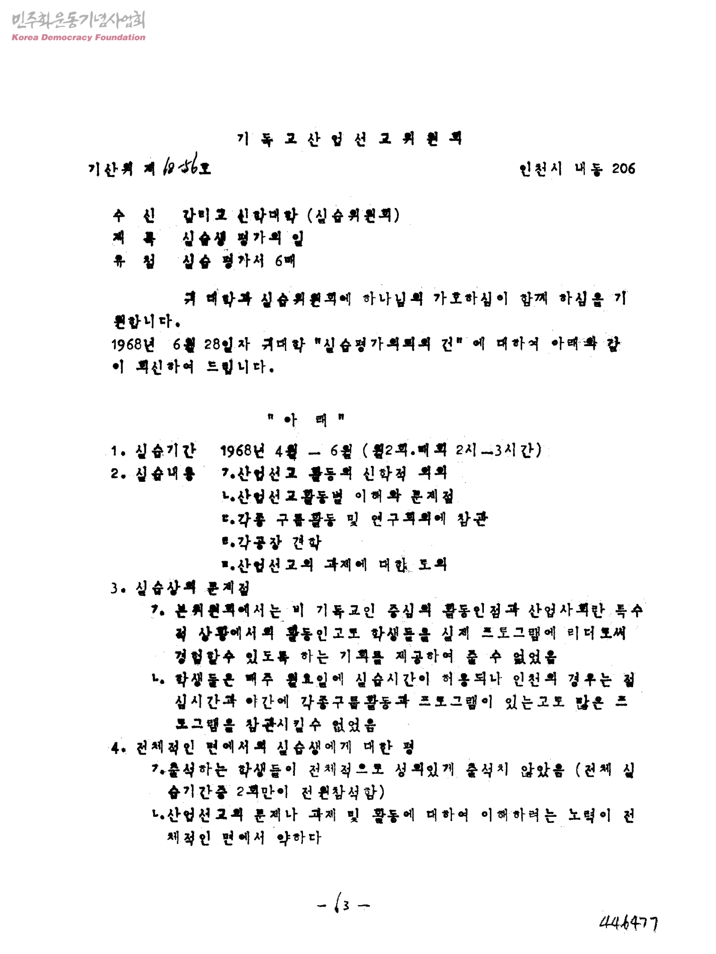 실습생 평가의 일[수신:감리교 신학대학(실습위원회)]