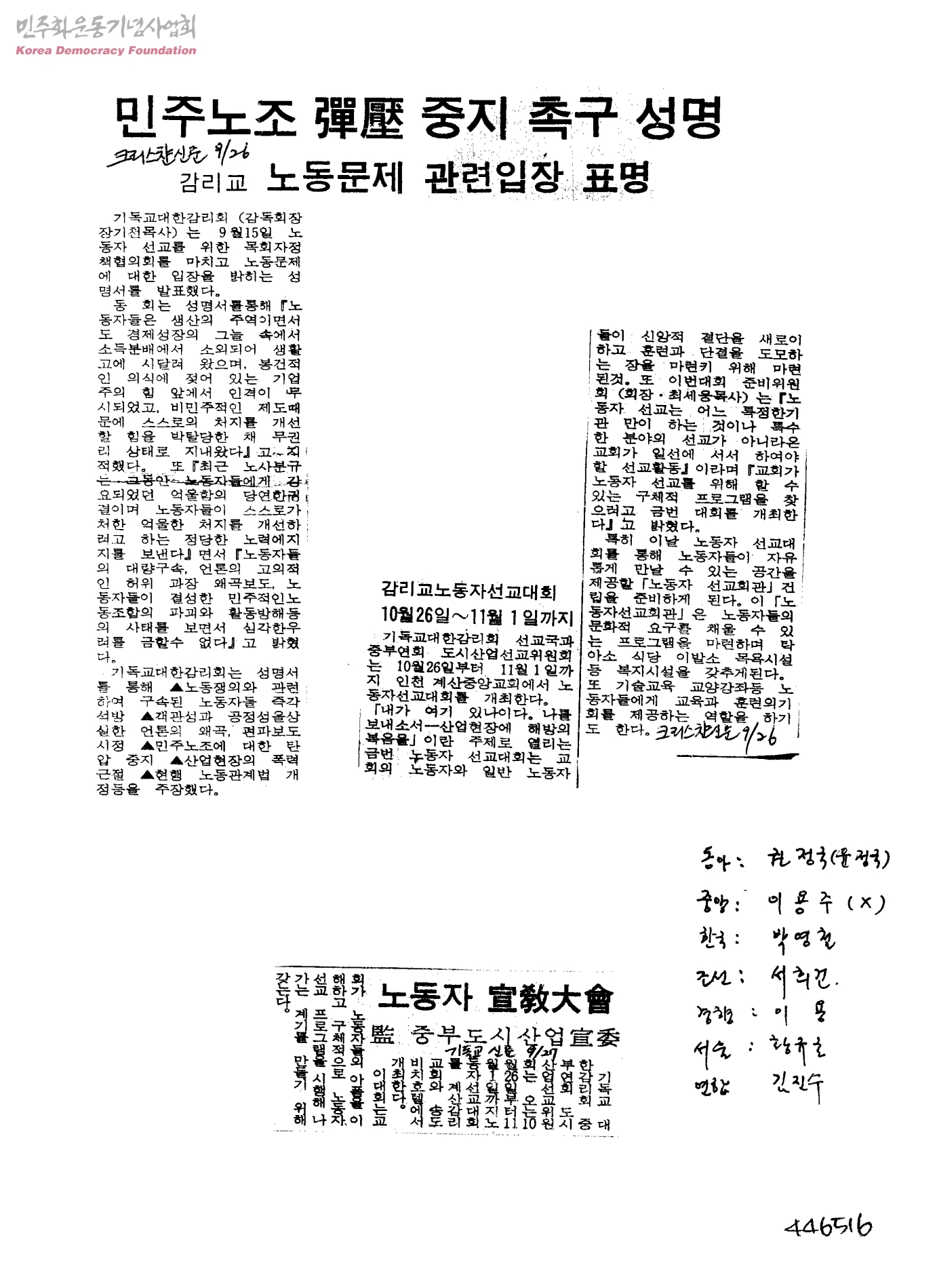 민주노조彈壓중지 촉구 성명- 감리교 노동문제 관련입장 표명