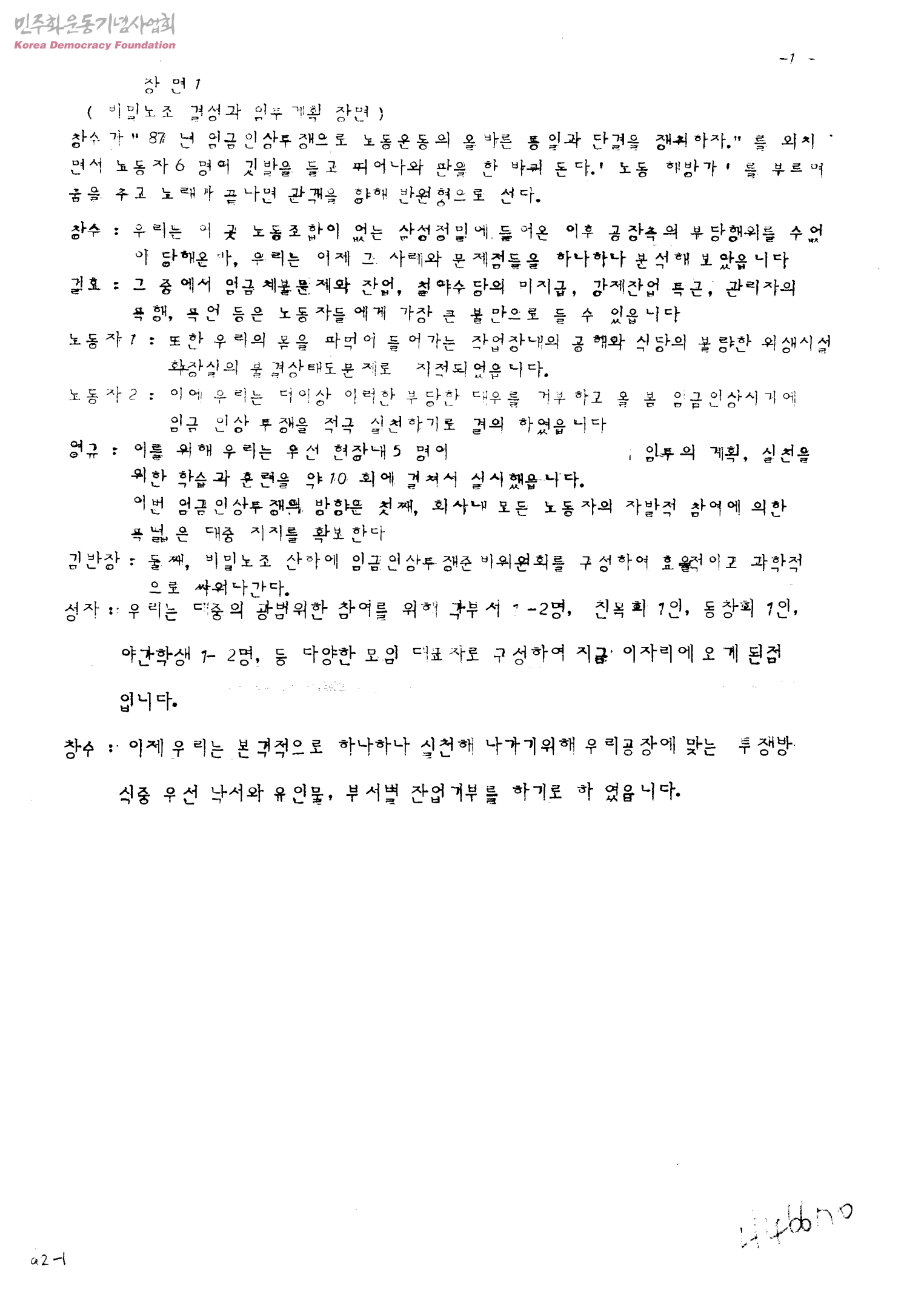 [연극대본-장면1 비밀노조 결성과 임투 계획 장면]