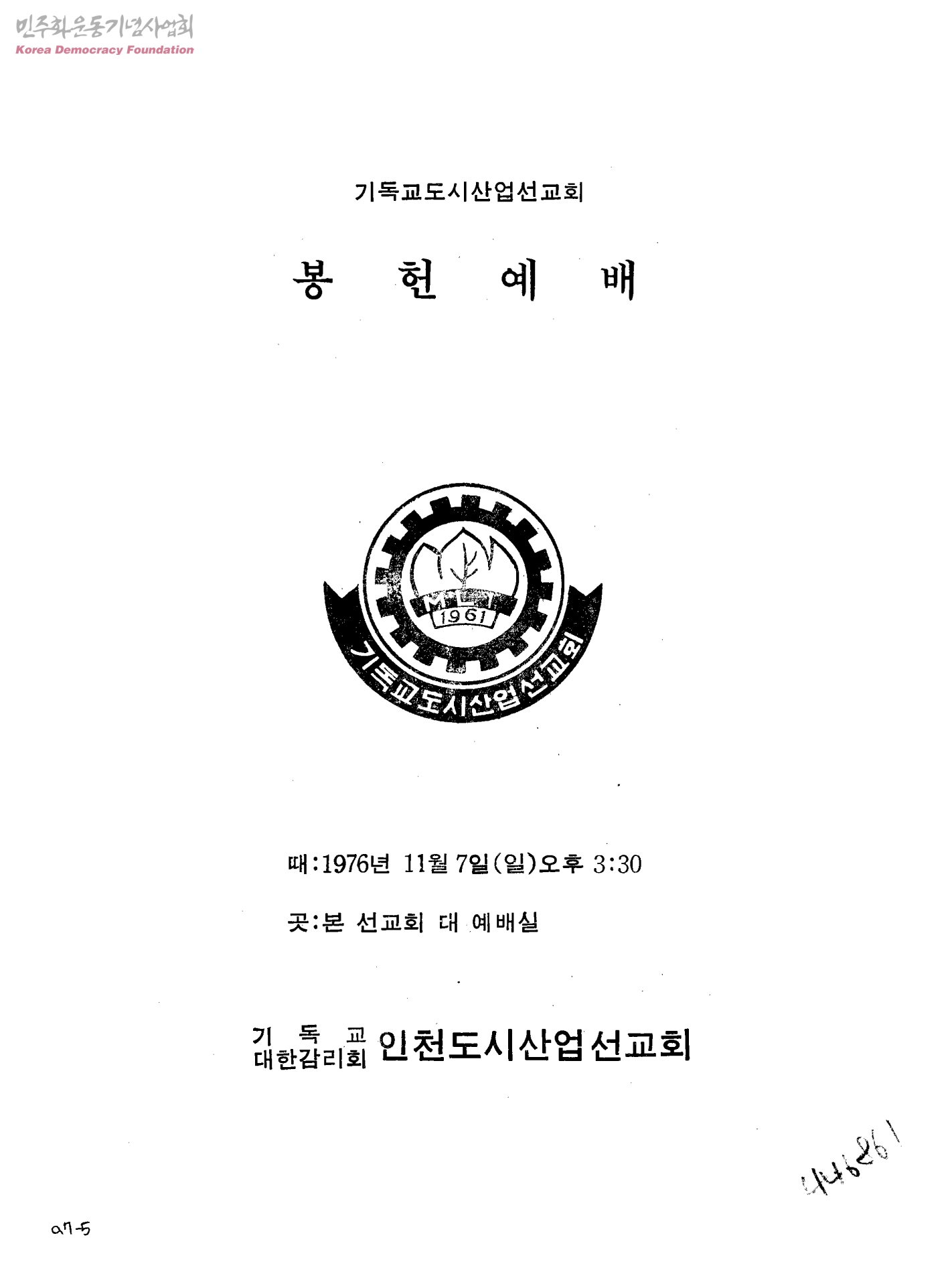 기독교도시산업선교회 봉헌예배