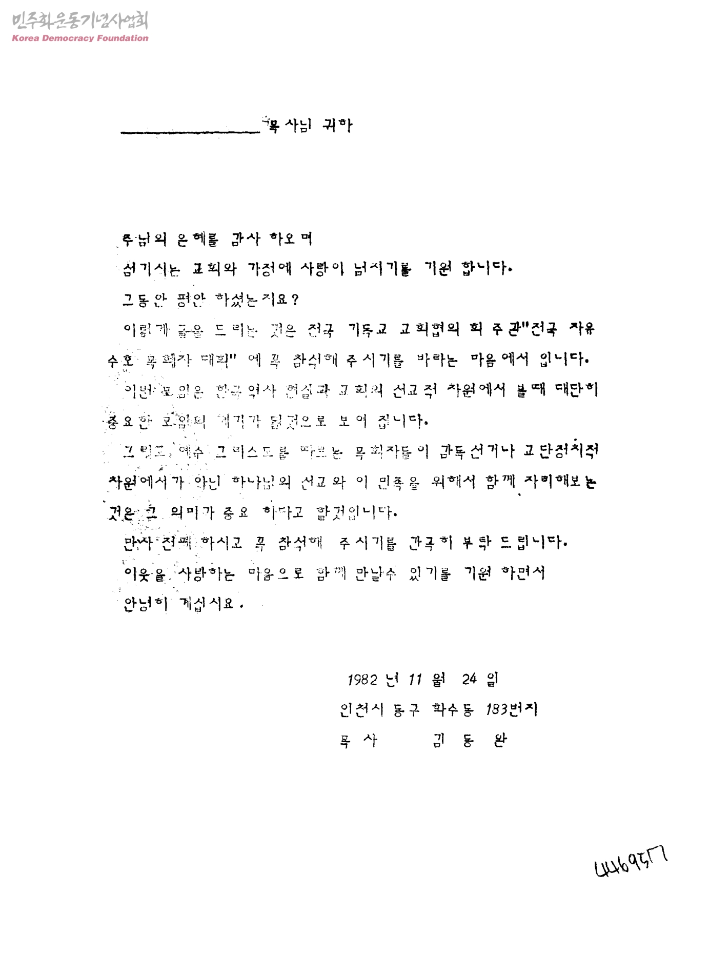 [전국기독교 교회협회 주관"전국 자유수호 목회자 대회"참석관련 편지]