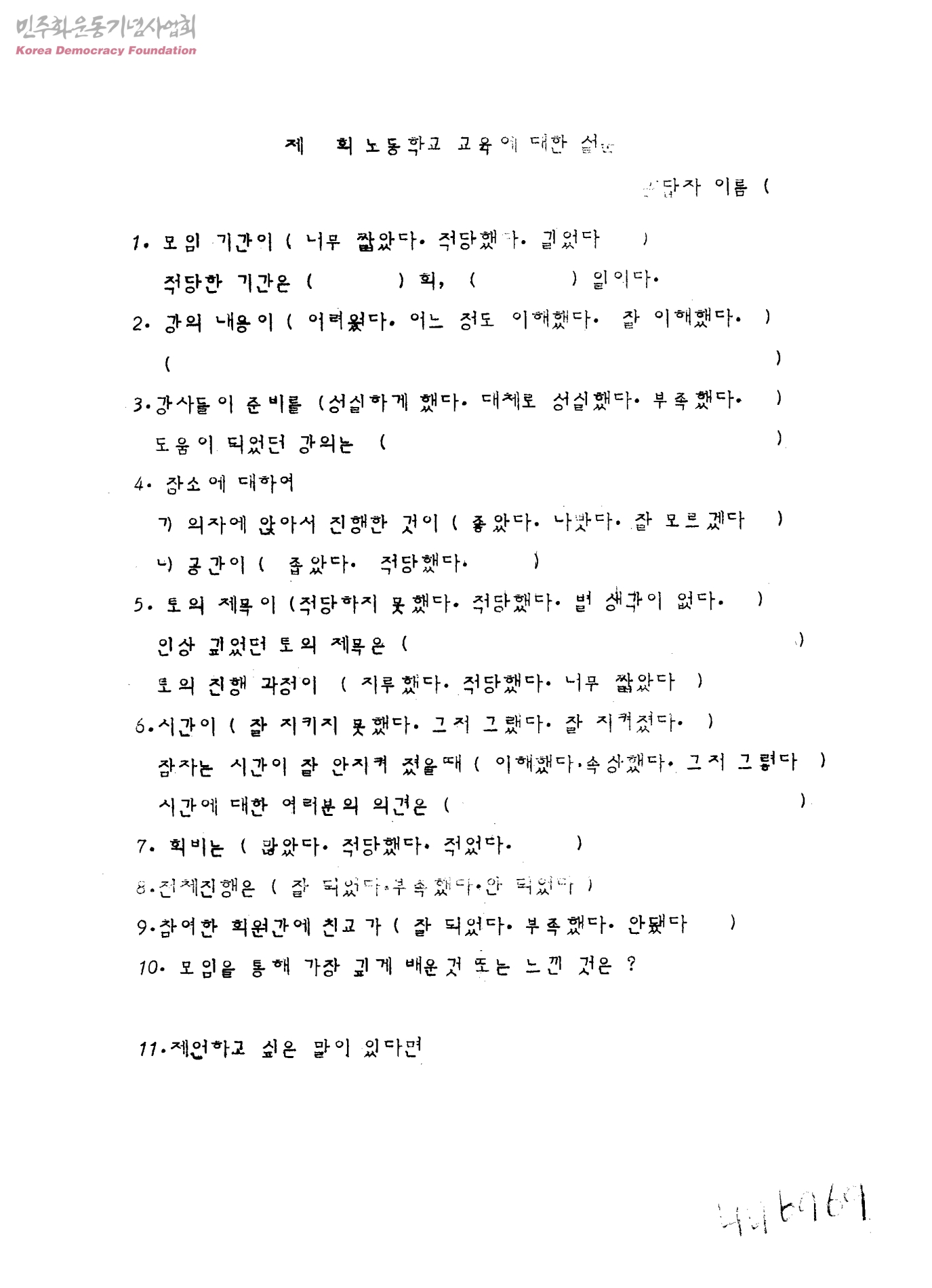 [노동학교 교육에 대한 설문]