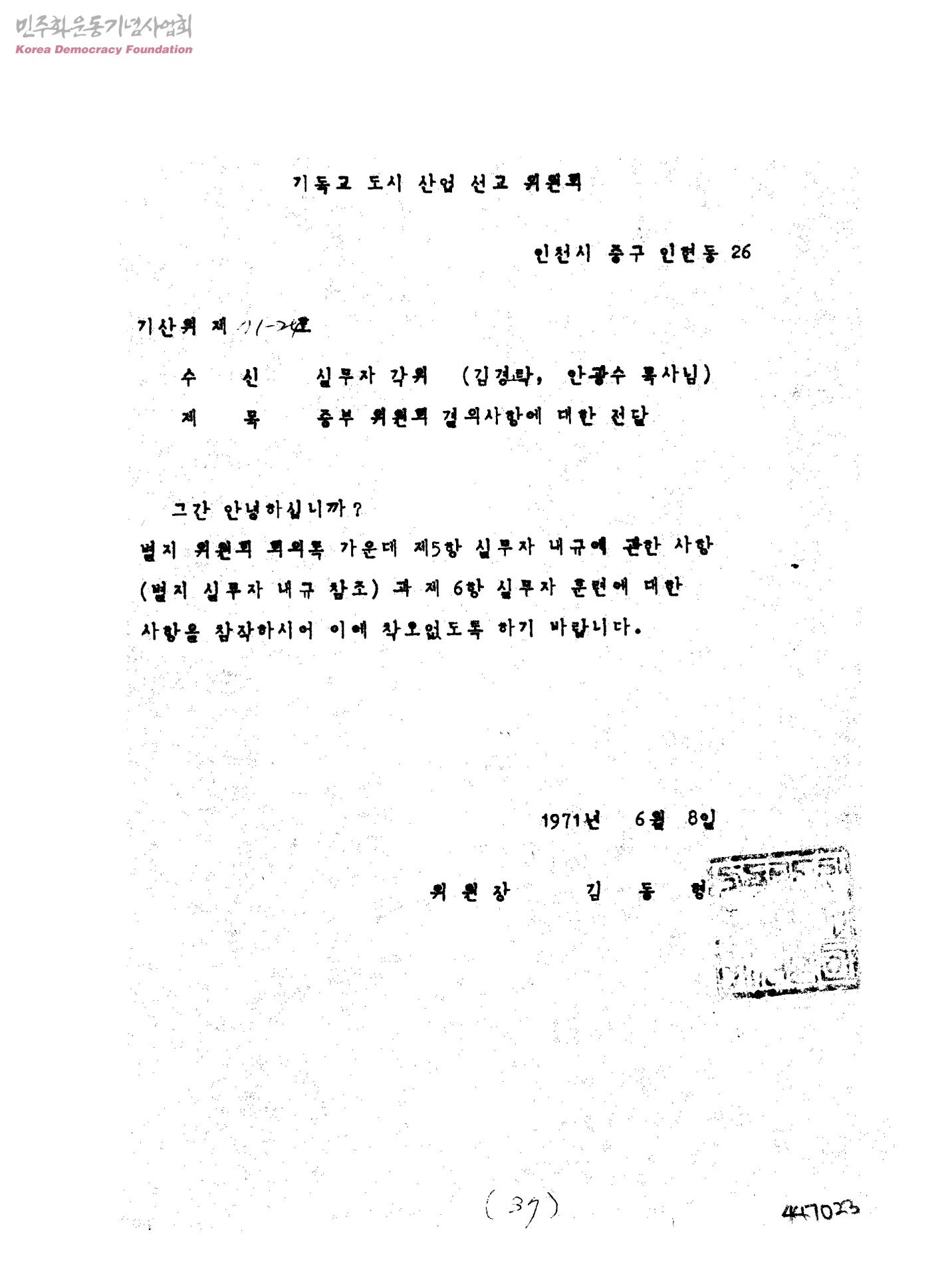 중부 위원회 결의사항에 대한 전달[수신:실무자 각위(김경락,안광수 목사님)]