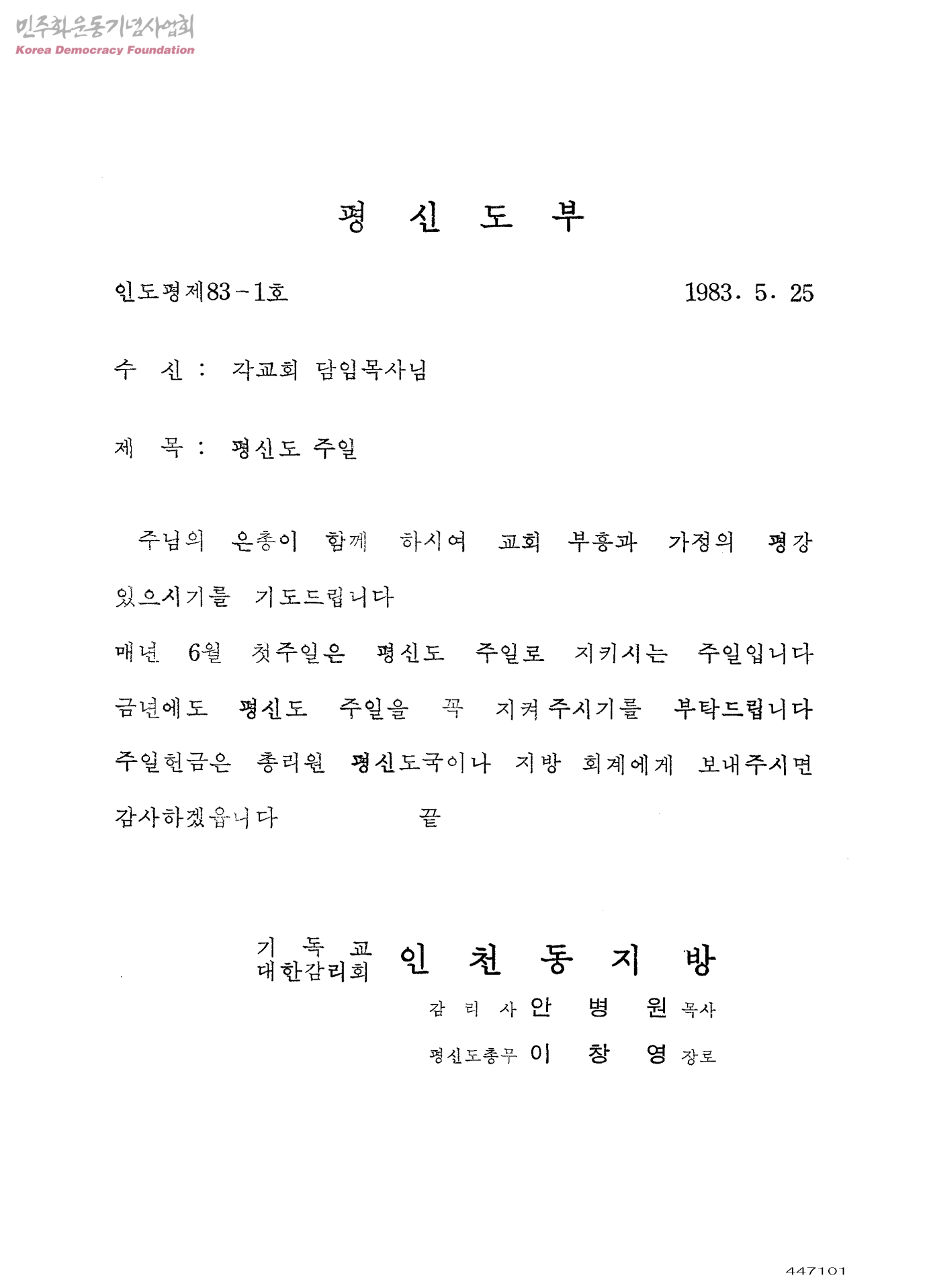 평신도 주일[수신:각교회 담임목사, 발신:기독교대한감리회 인천동지방]