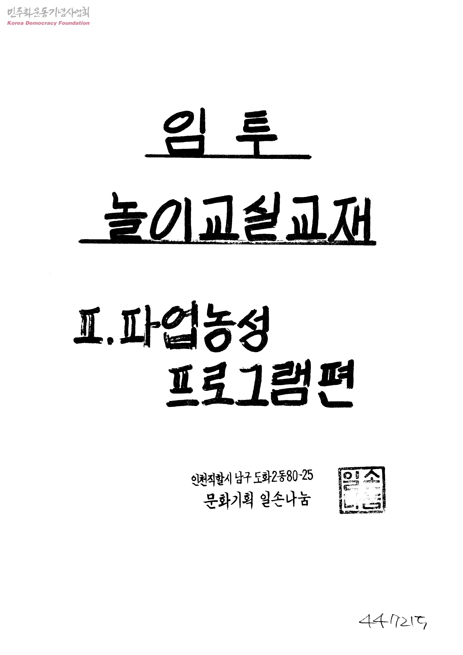 임투 놀이교실교재 Ⅱ.파업농성 프로그램편