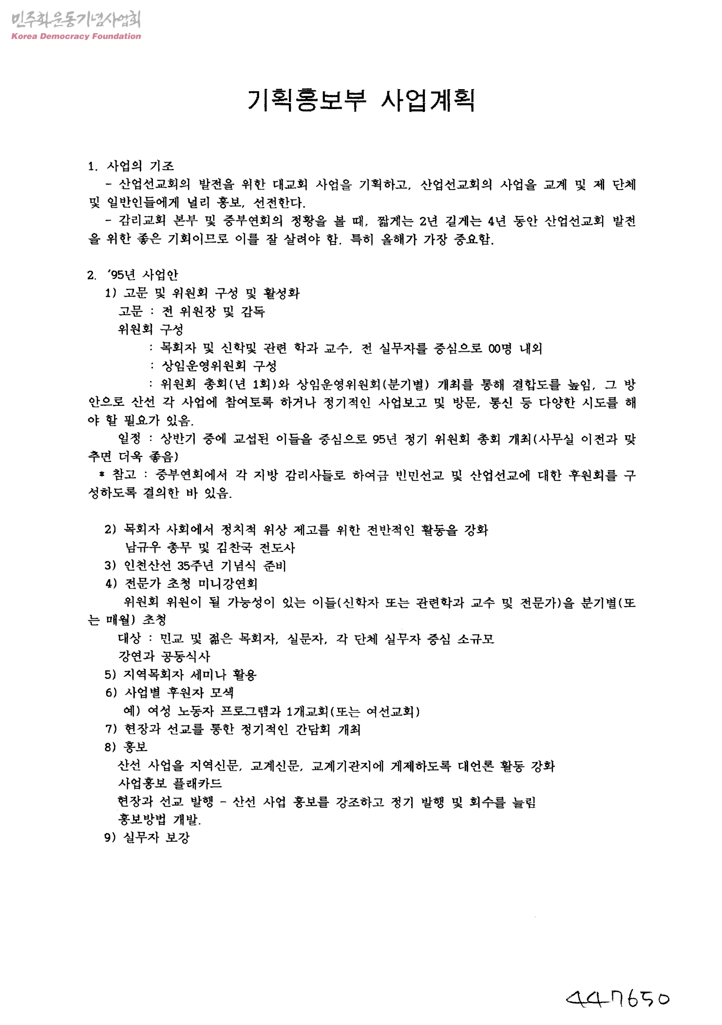 기획홍보부 사업계획