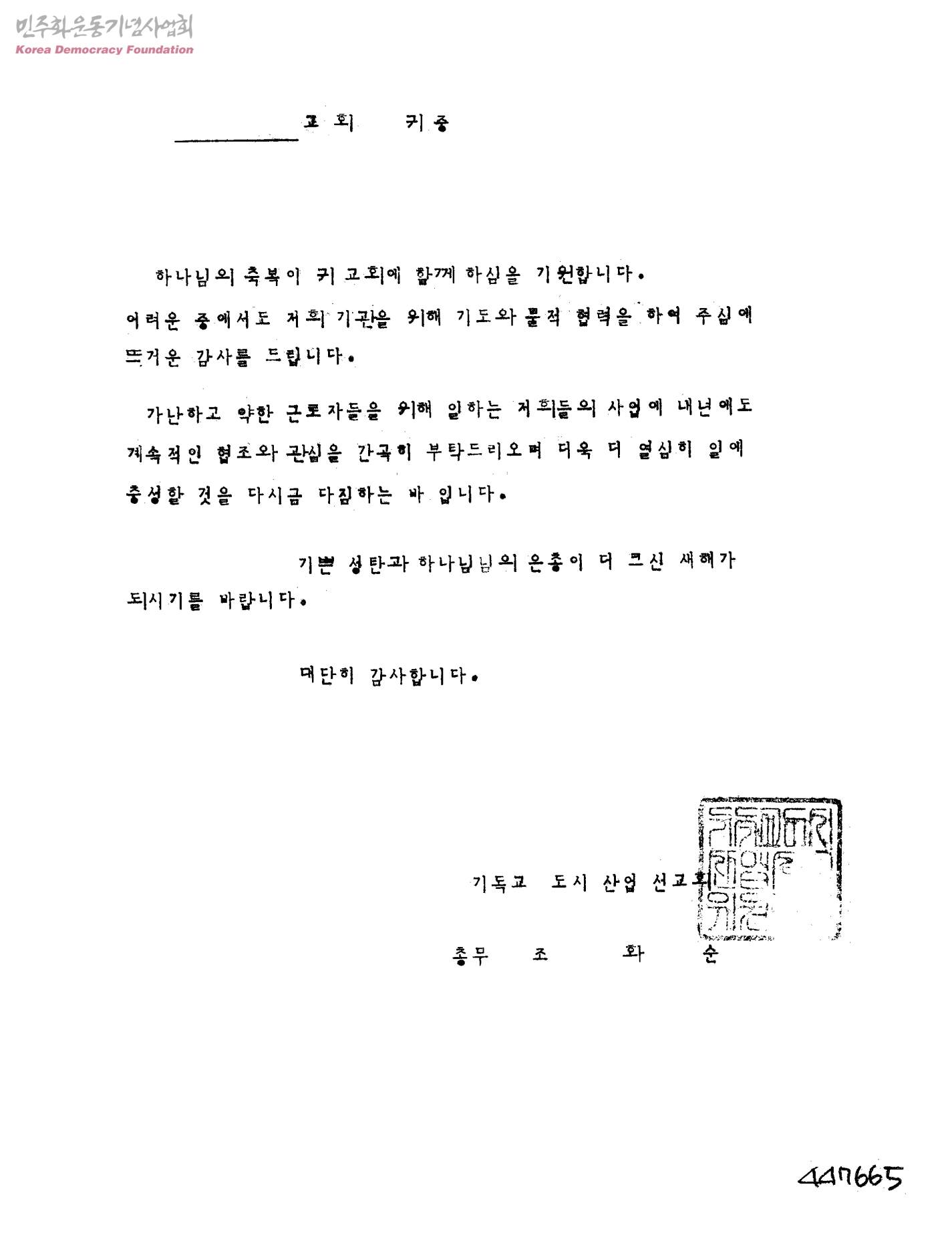 [기독교도시산업선교회의 감사의 인사와 성탄맞이 연하장]