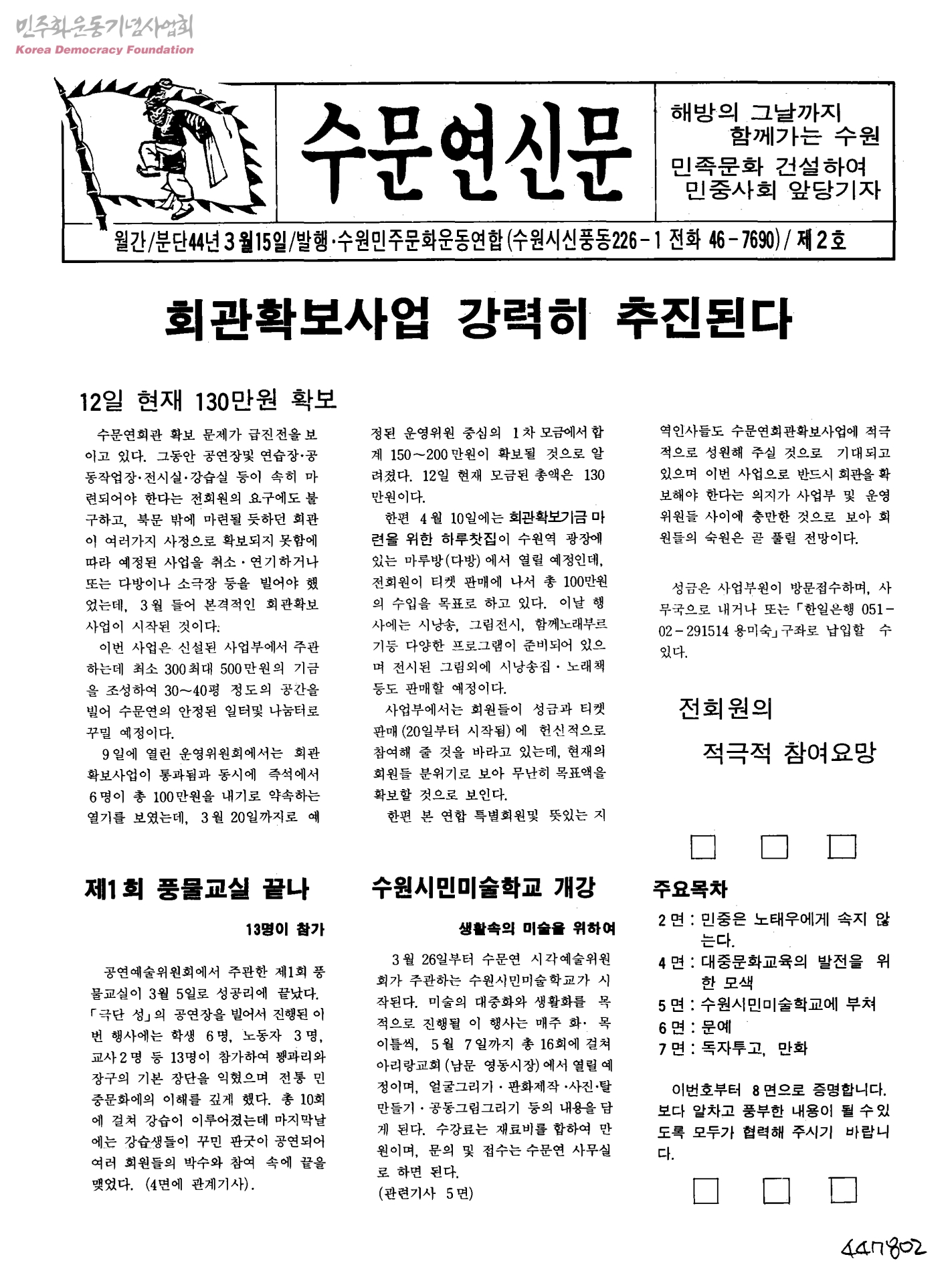 수문연신문-회관확보사업 강력히 추진된다