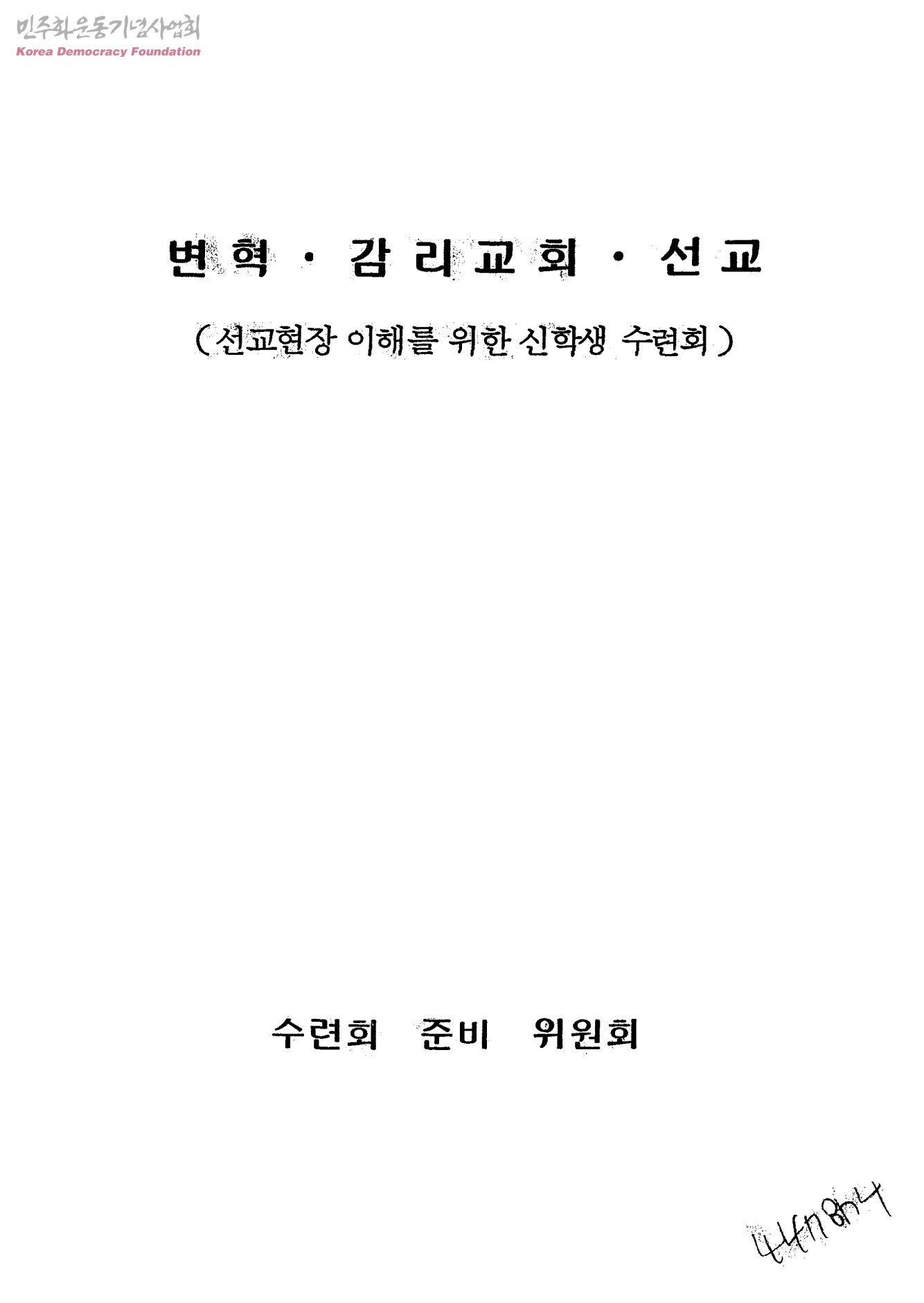 변혁.감리교회.선교(선교현장 이해를 위한 신학생 수련회)