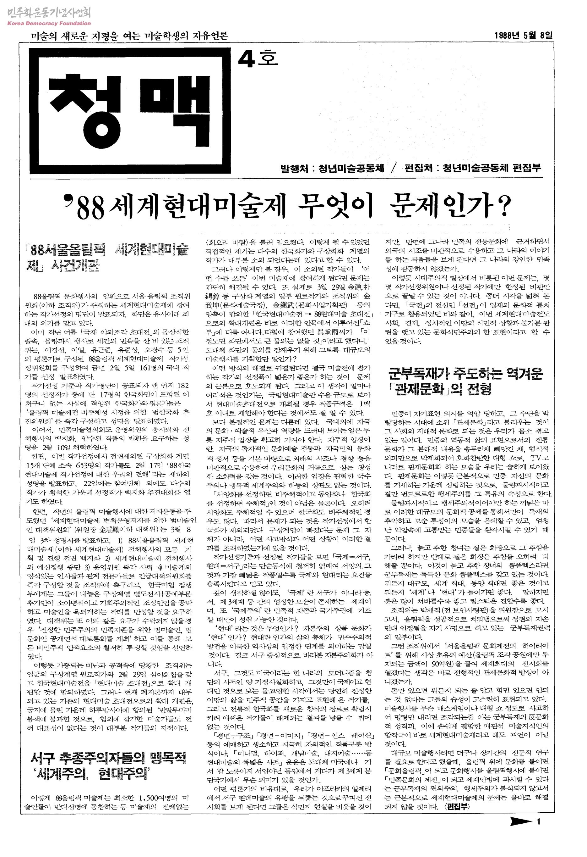 청맥4호-88세계현대미술제 무엇이 문제인가?