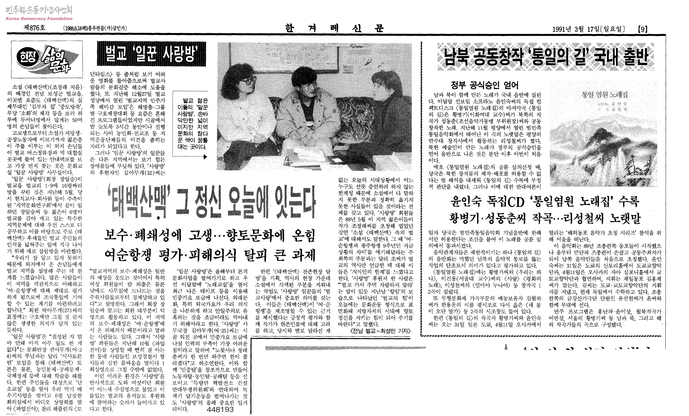 태백산맥 그 정신 오늘에 잇는다