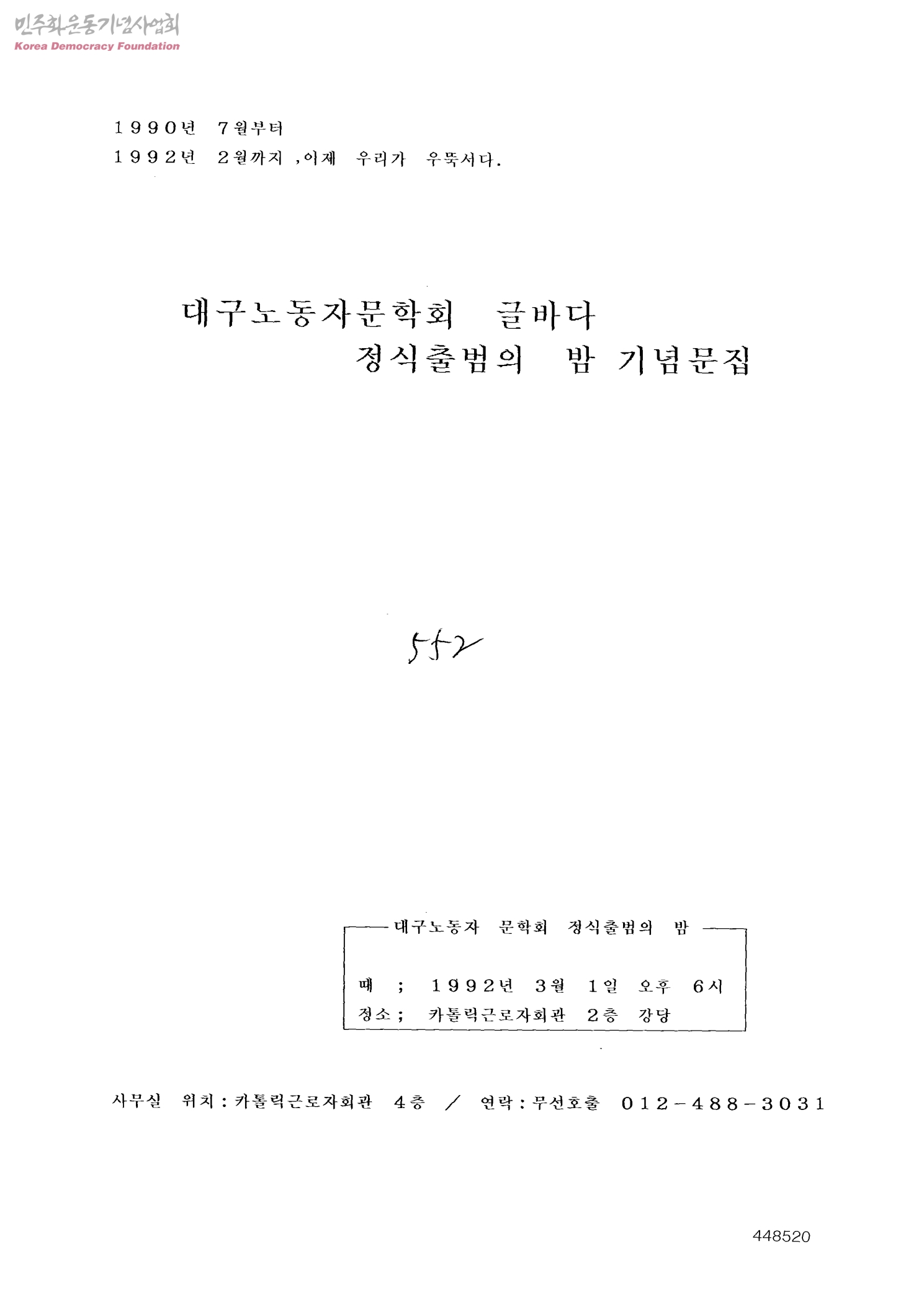 대구노동자문학회 글바다 정식출범의 밤 기념문집