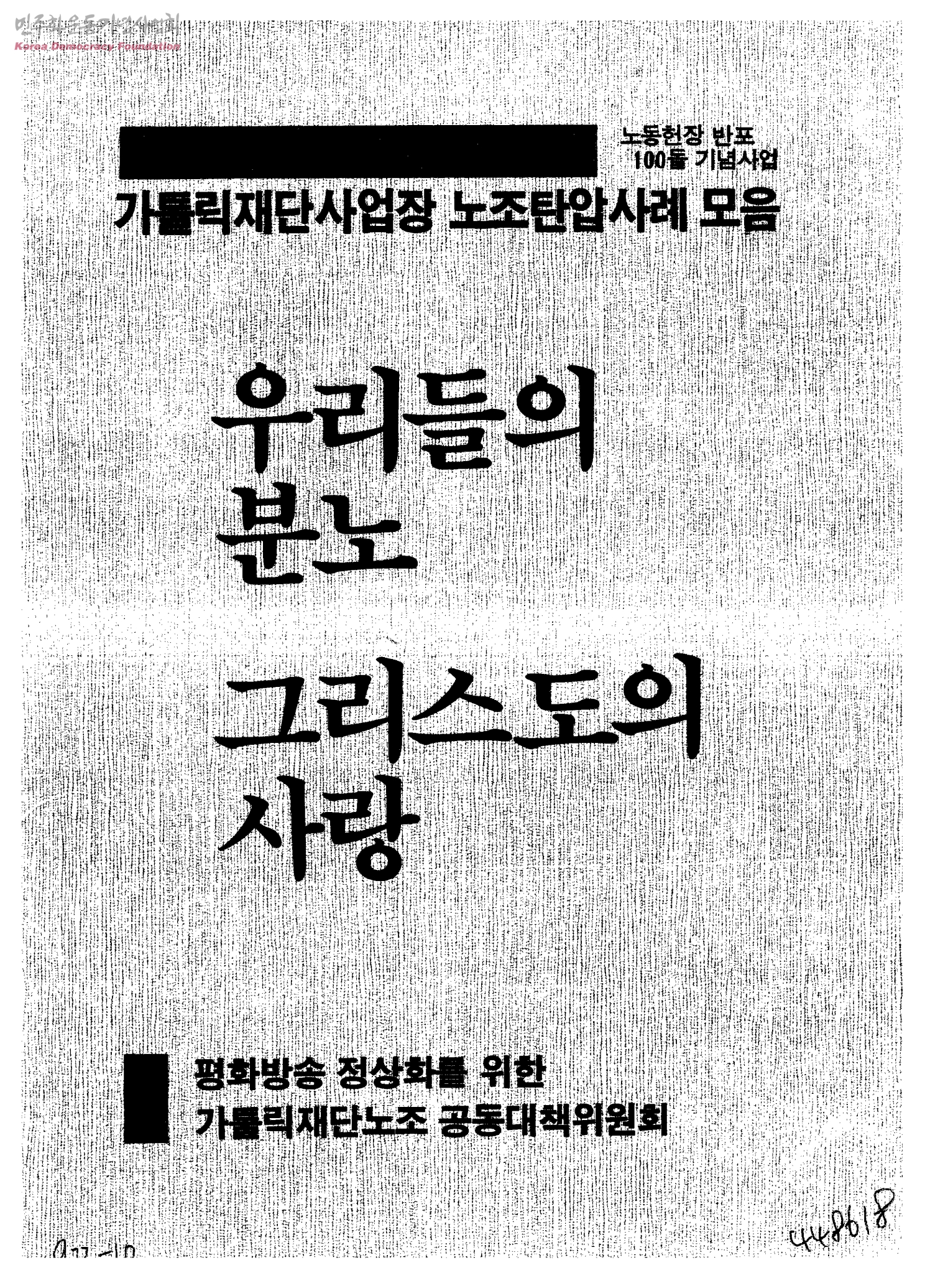 노동헌장 반포 100돌 기념사업 가톨릭재단사업장 노조탄압사례 모음-우리들의 분노 그리스도의 사랑