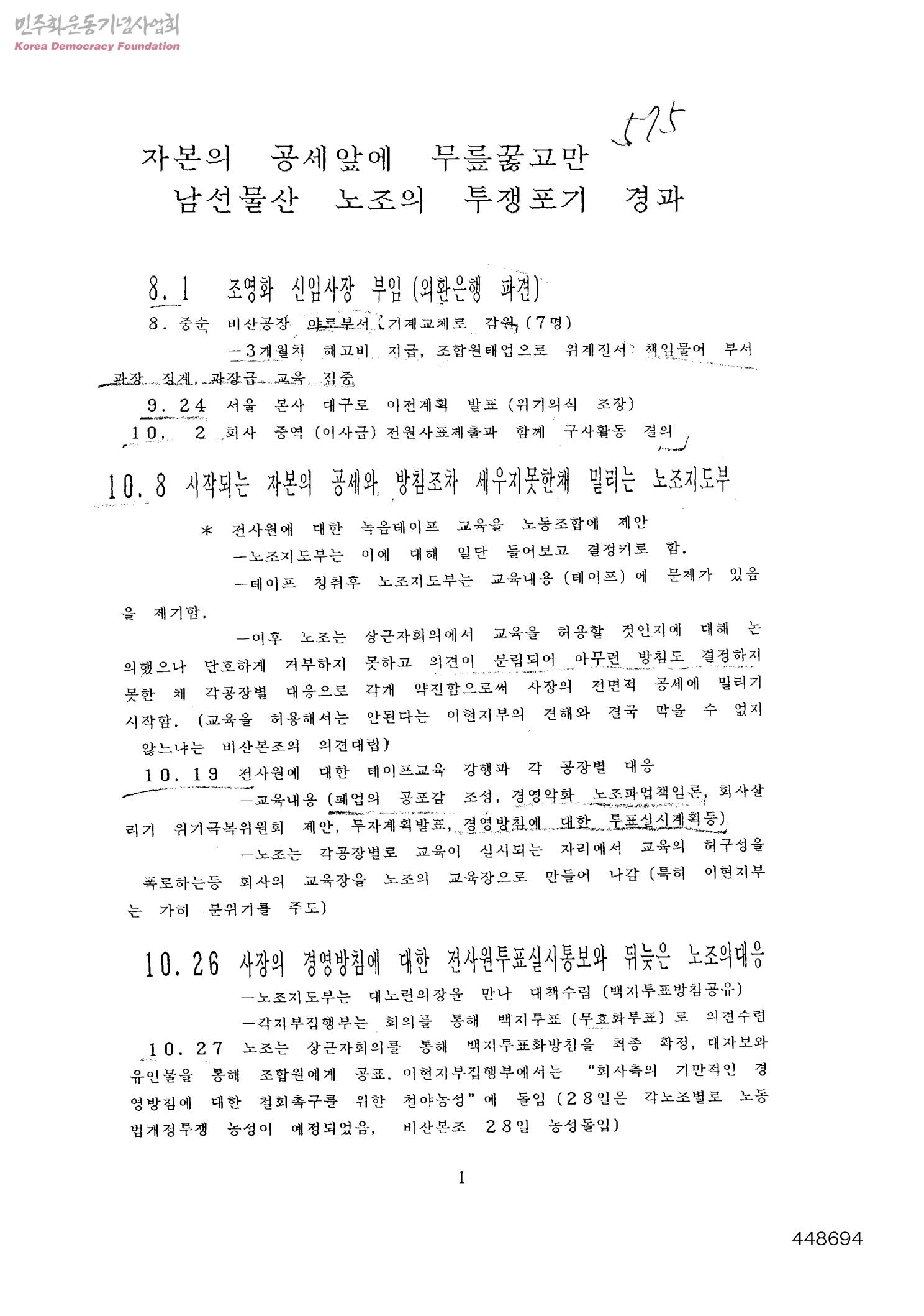 자본의 공세앞에 무릎 꿇고만 남선물산 노조의 투쟁포기 경과