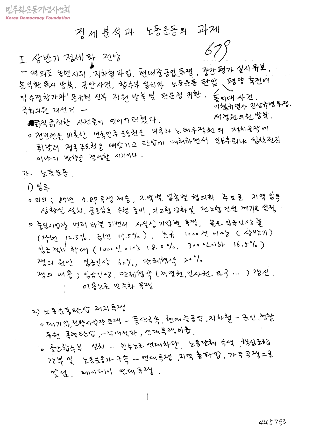 정세분석과 노동운동의 과제