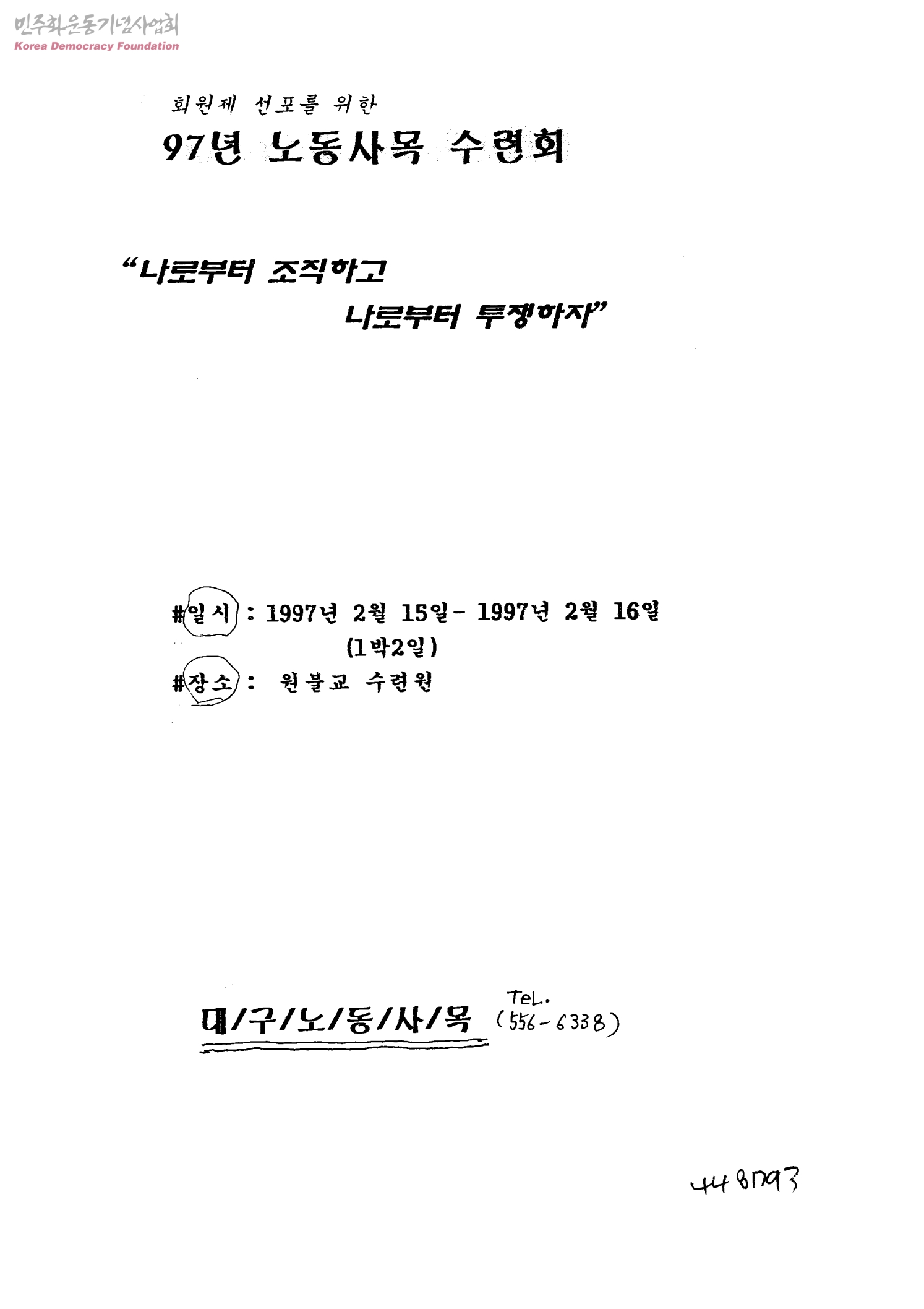 회원제 선포를 위한 97년 노동사목 수련회-나로부터 조직하고 나로부터 투쟁하자