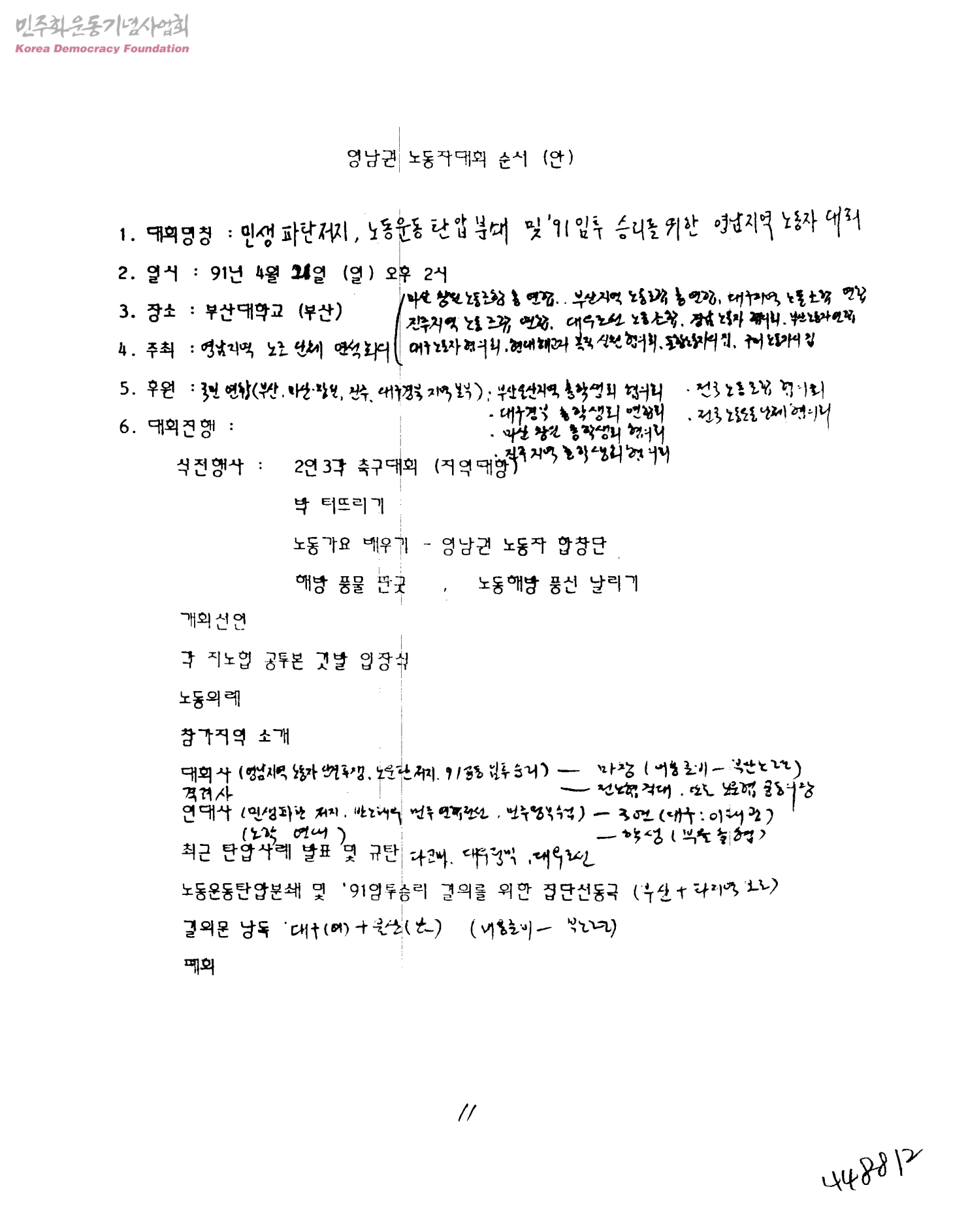 - 민생파탄저지,노동운동탄압분쇄및 '91임투승리를 위한 영남지역 노동자대회