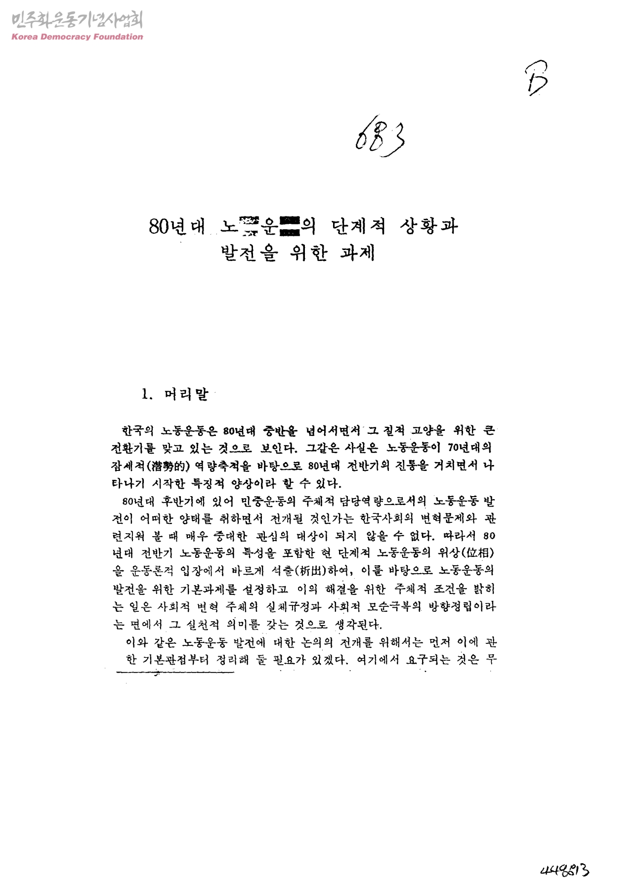 [80년대 노동운동의 단계적 상황과 발전을 위한 과제]