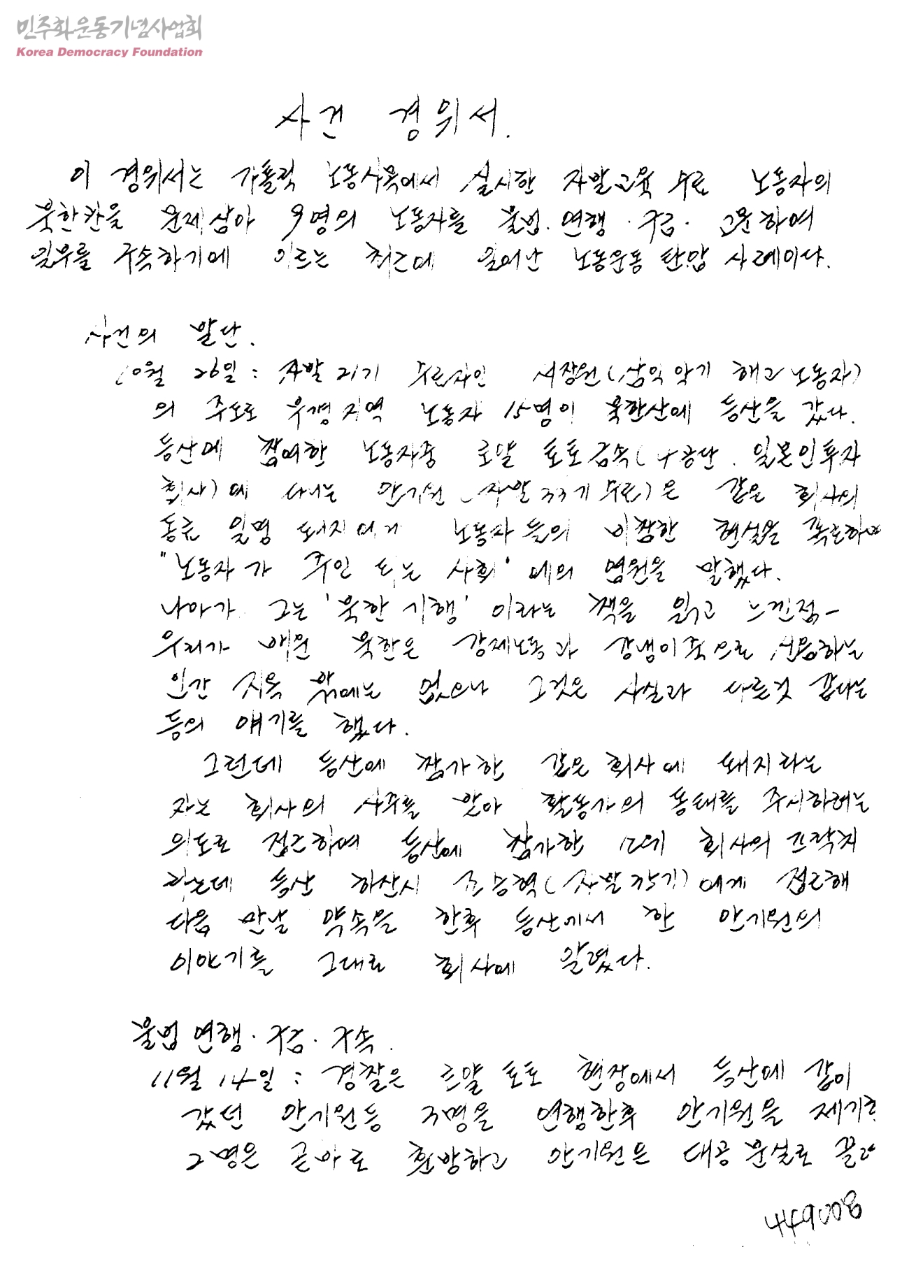 사건 경위서[가톨릭노동사목교육수료노동자 불법연행관련]