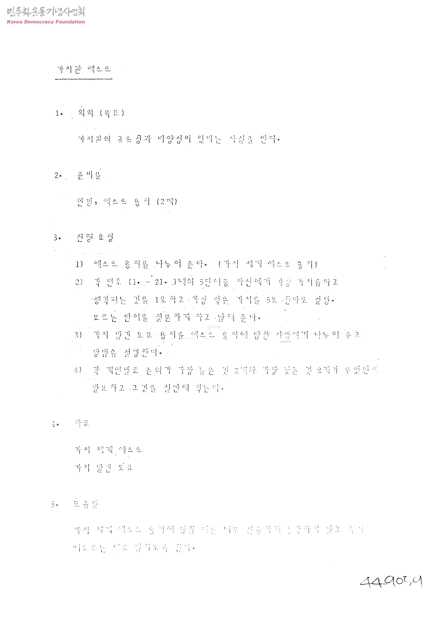 가치관 테스트[노동자 교육훈련 자료]