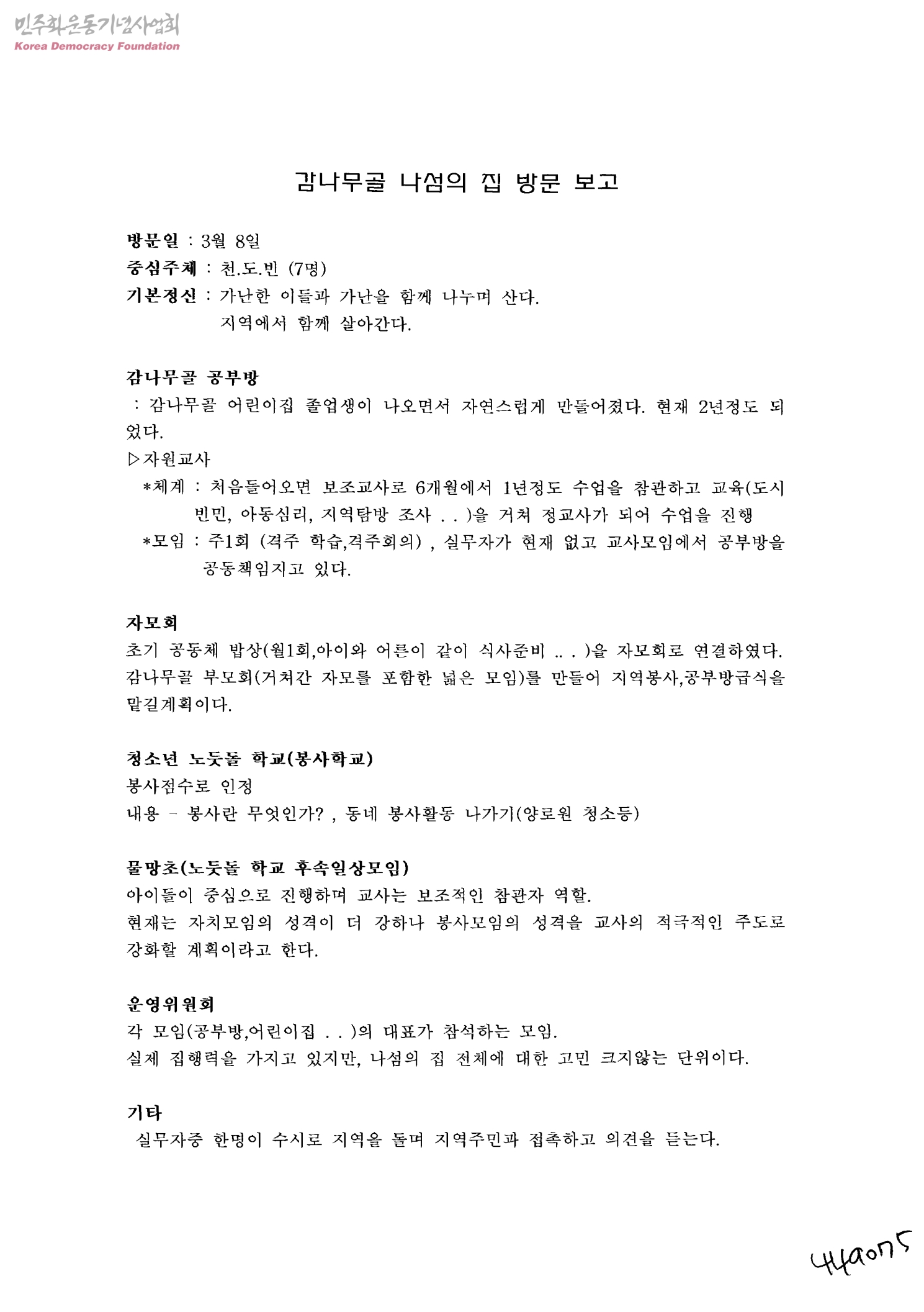 - 감나무골 공부방,자모회,청소년 노둣돌 학교,물망초,운영위원회,기타