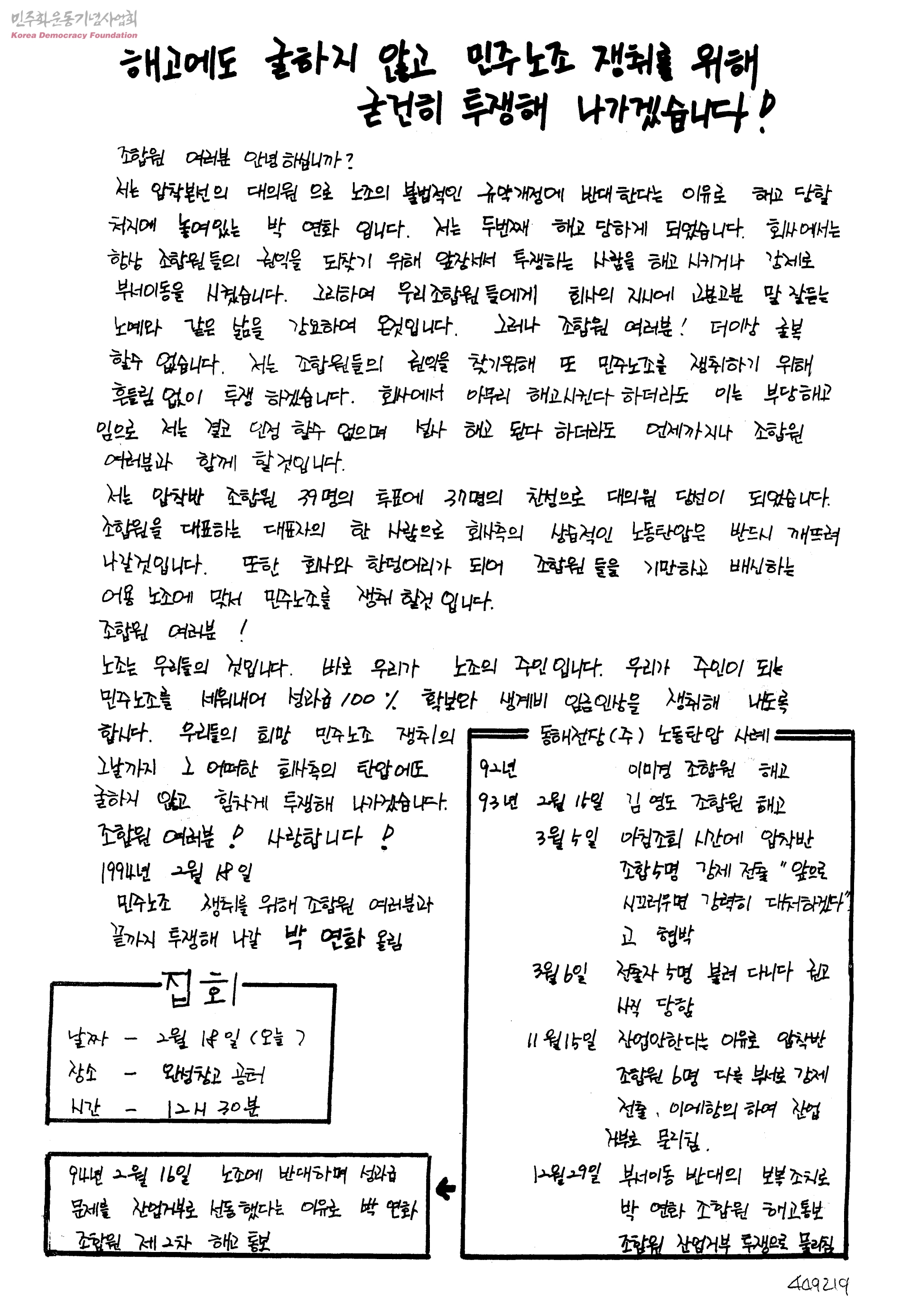 해고에도 굴하지 않고 민주노조 쟁취를 위해 굳건히 투쟁해 나가겠습니다!